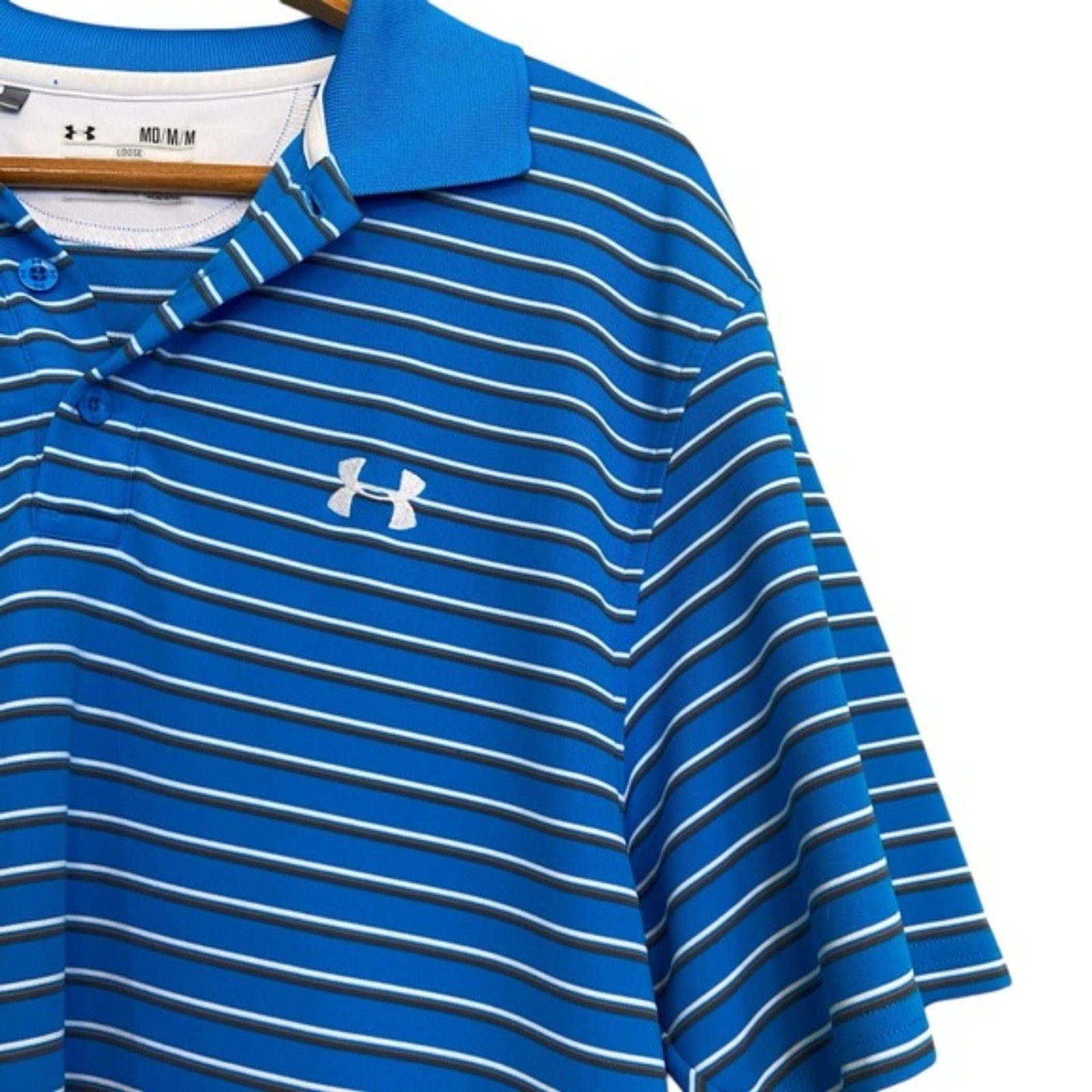 как выглядит Under Armour Striped Heatgear Loose Fit Golf Short Sleeve Polo Medium фото
