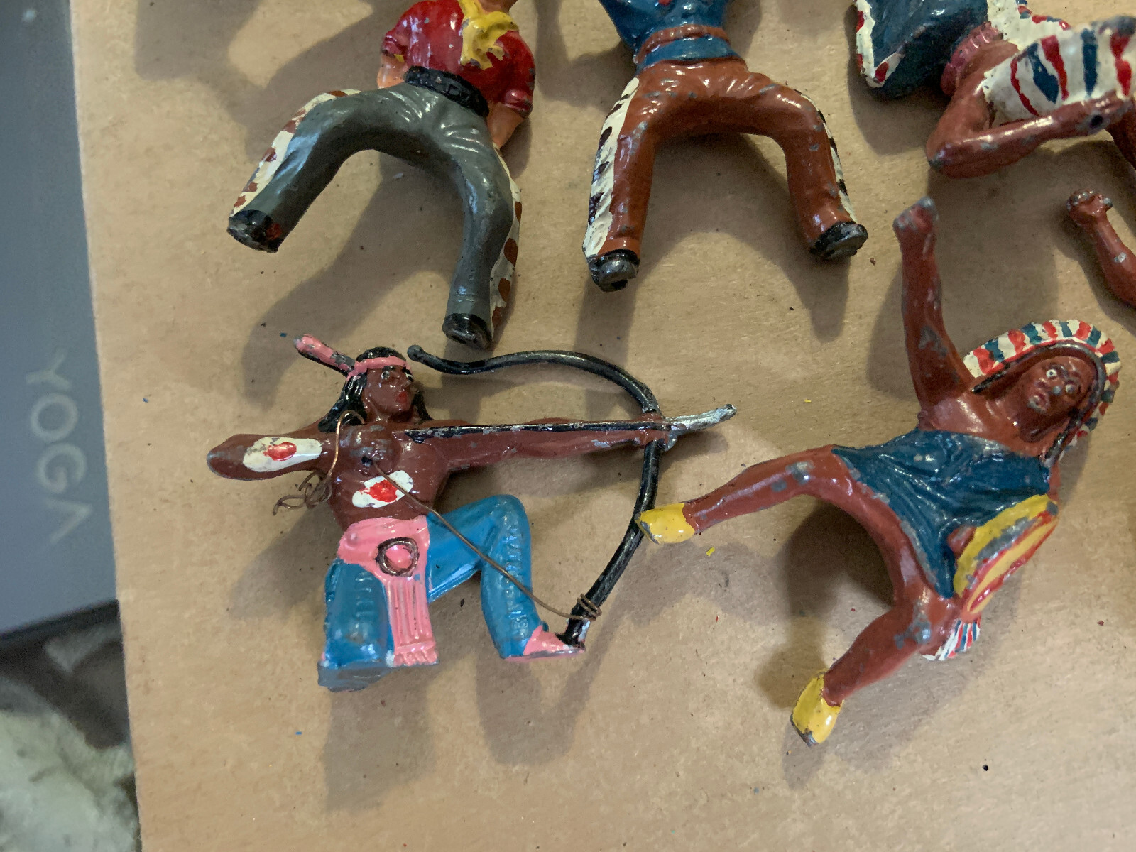 Lot of 8 Metal / Lead Indian Figure Timpo possibly other Brands