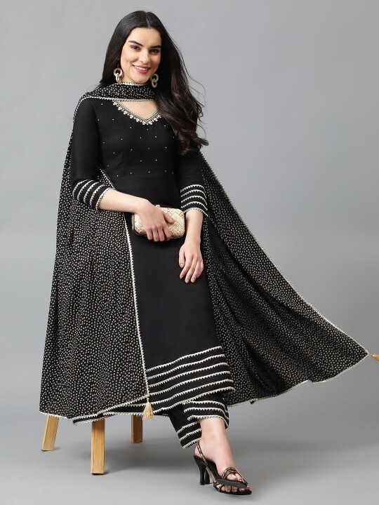 как выглядит Women Regular Gotta Patti Kurta with Palazzos With Dupatta Set фото