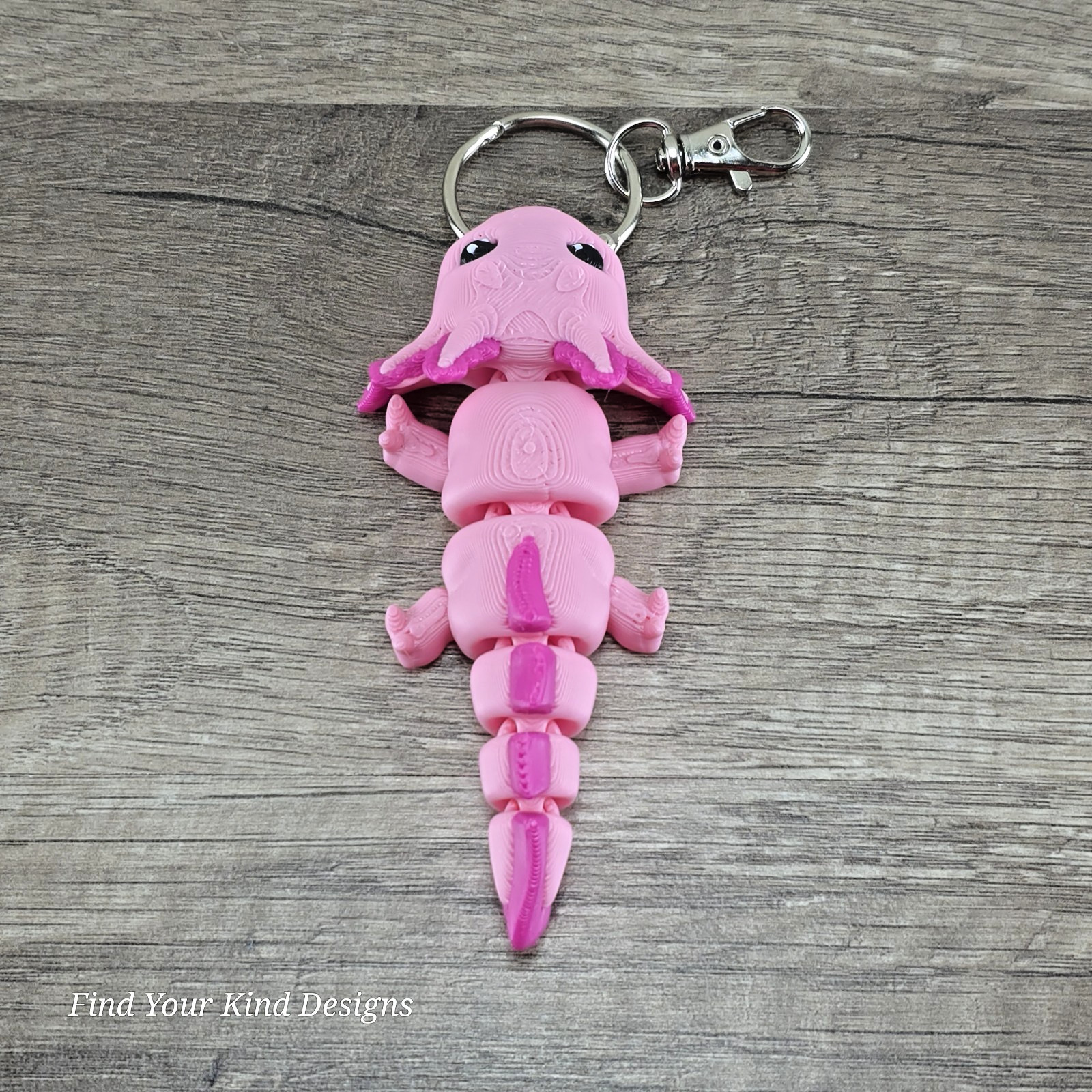 Mini Axolotl 3D printed articulated keychain toy 4.25 in Flexi Fidget gift Pink