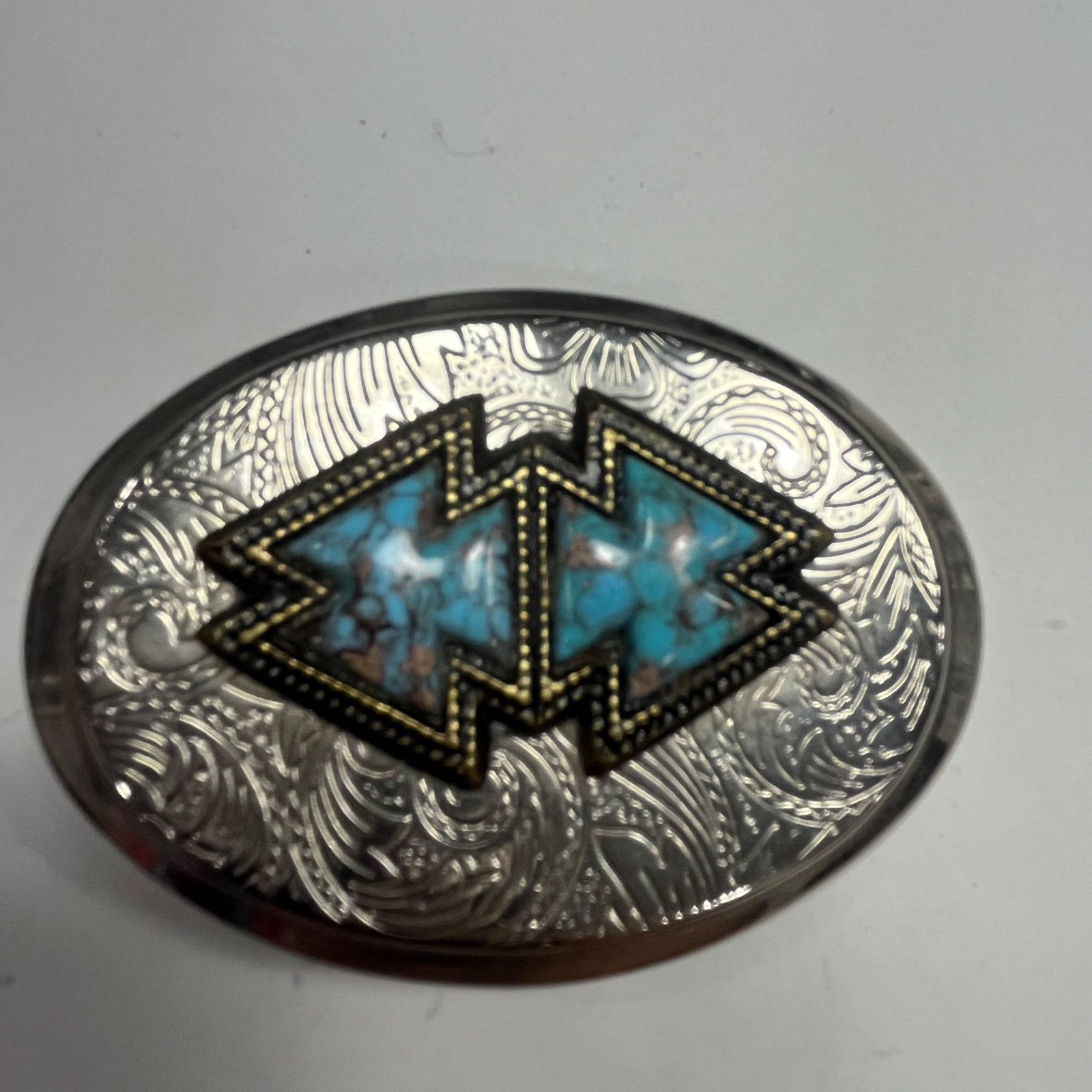 Turquoise Belt Buckle Southwestern Stainless Steel Silver Oval Design