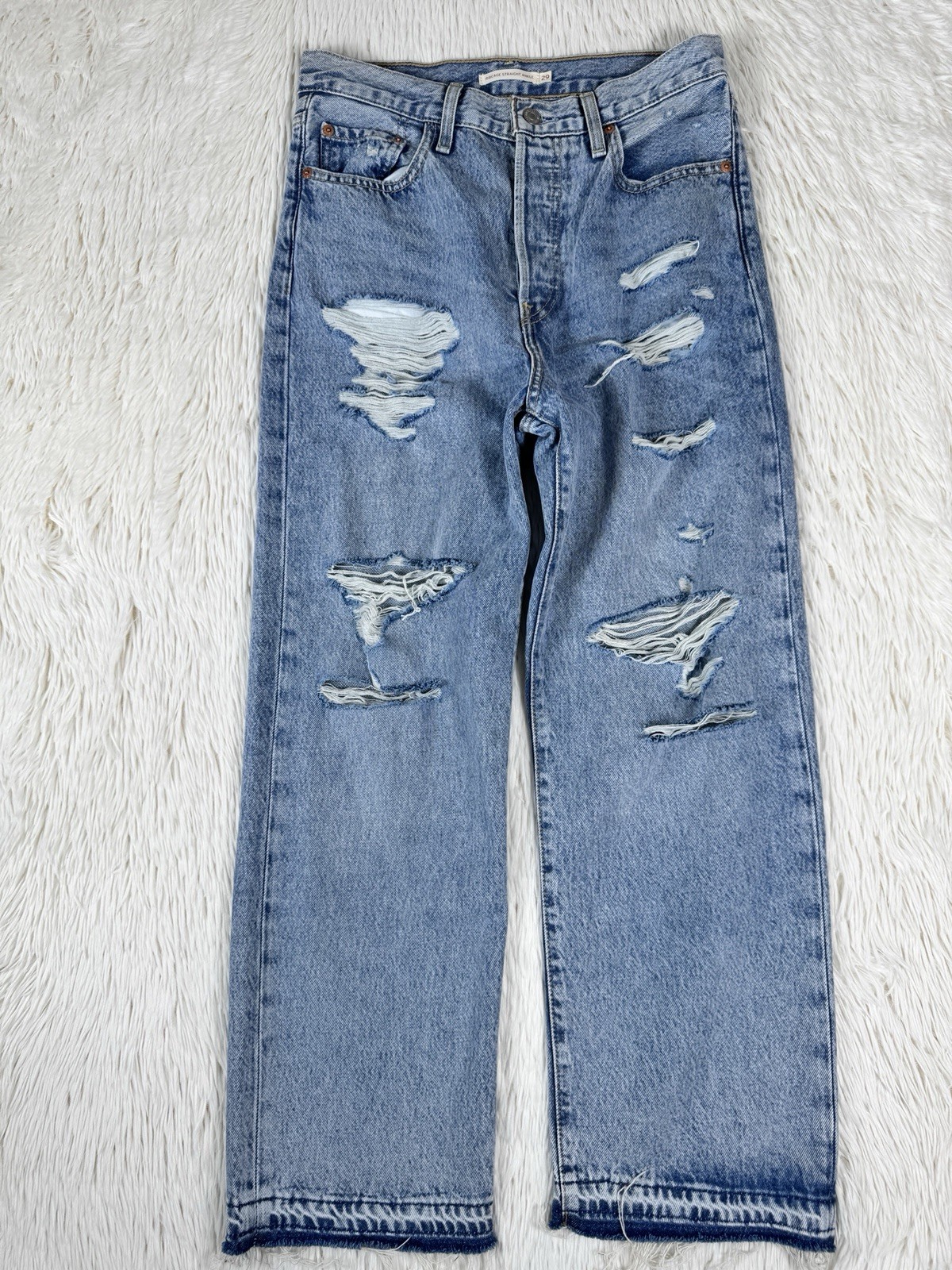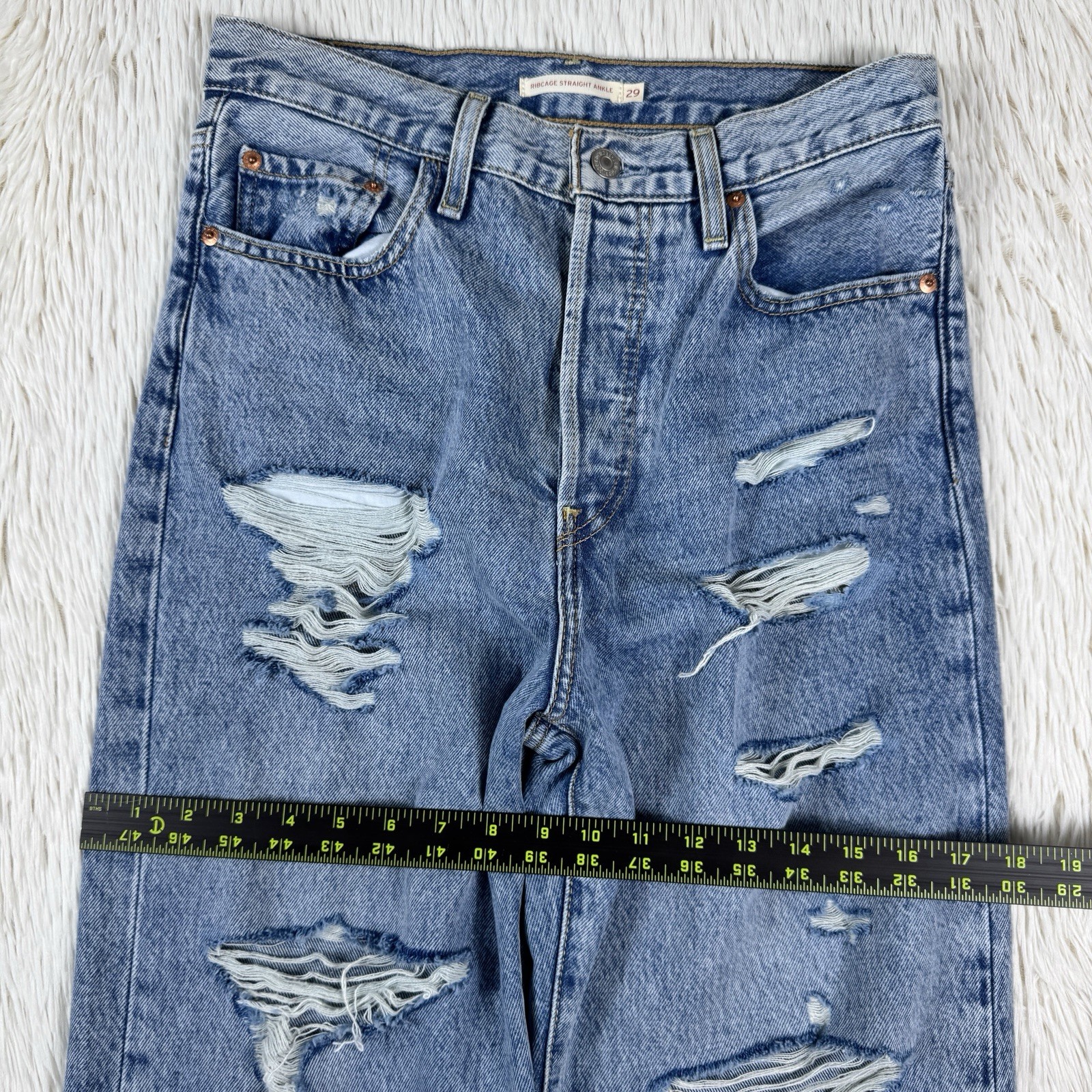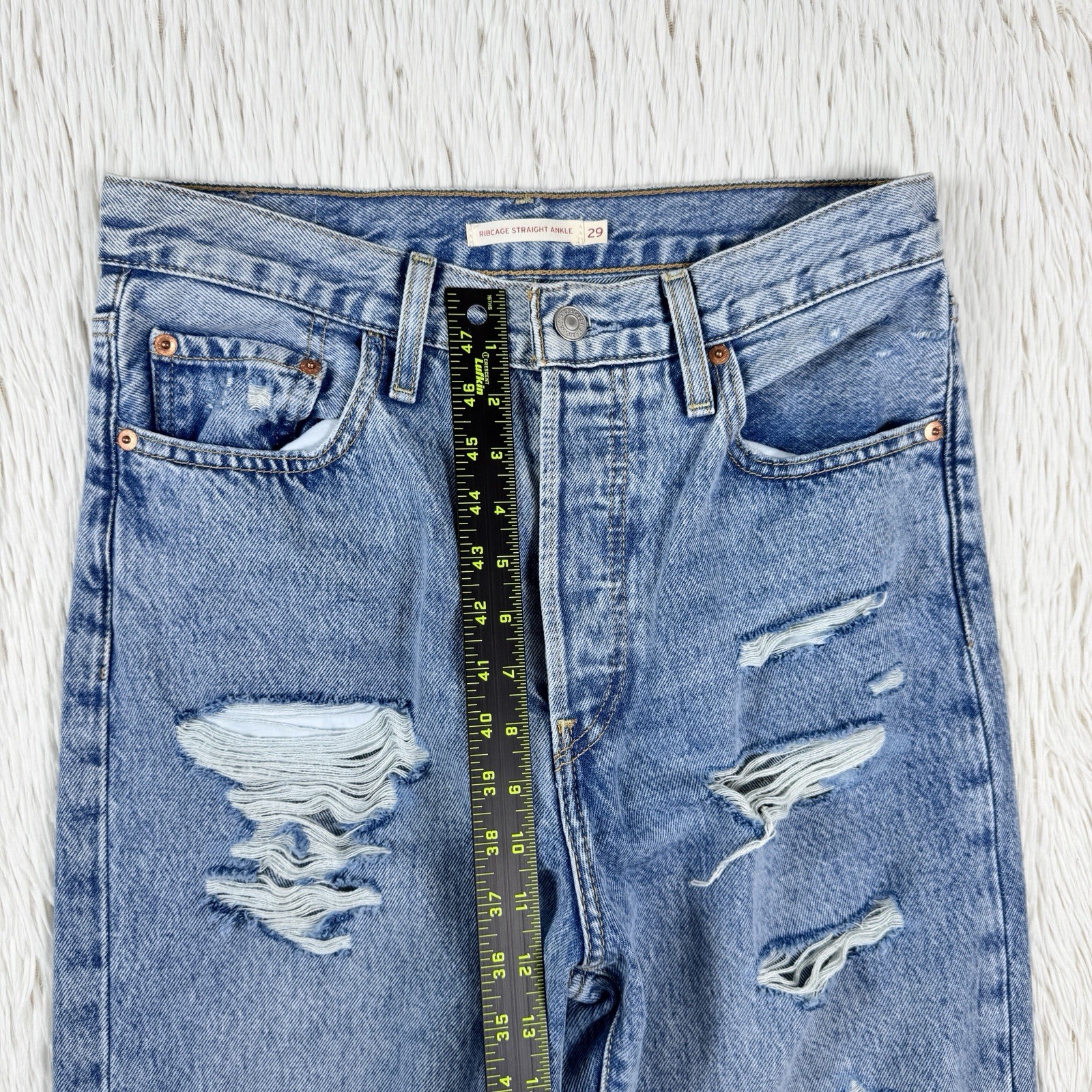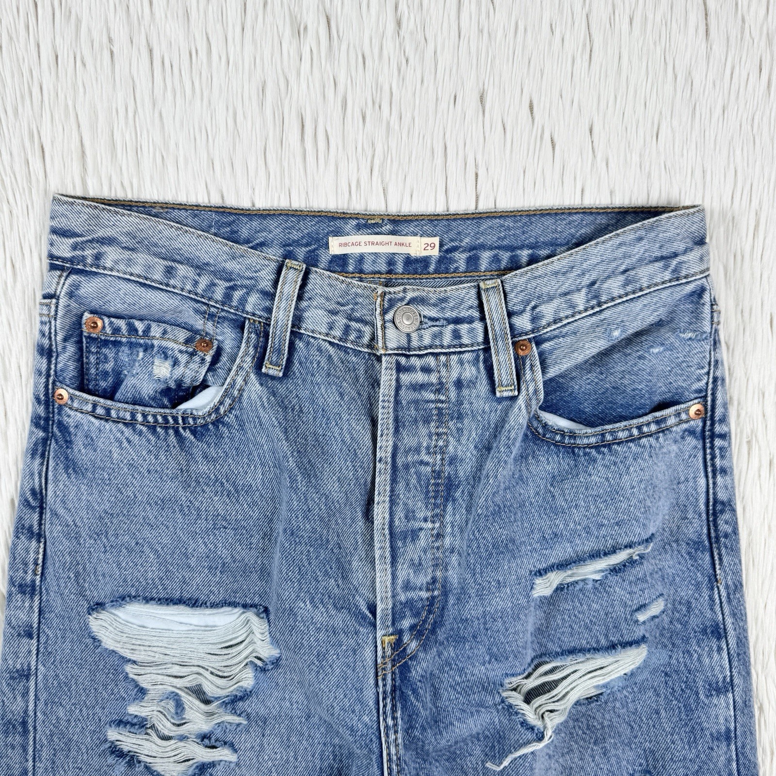 как выглядит LEVIS Light Wash Ribcage Straight Leg Ankle Denim Jeans Womens Size 29 фото