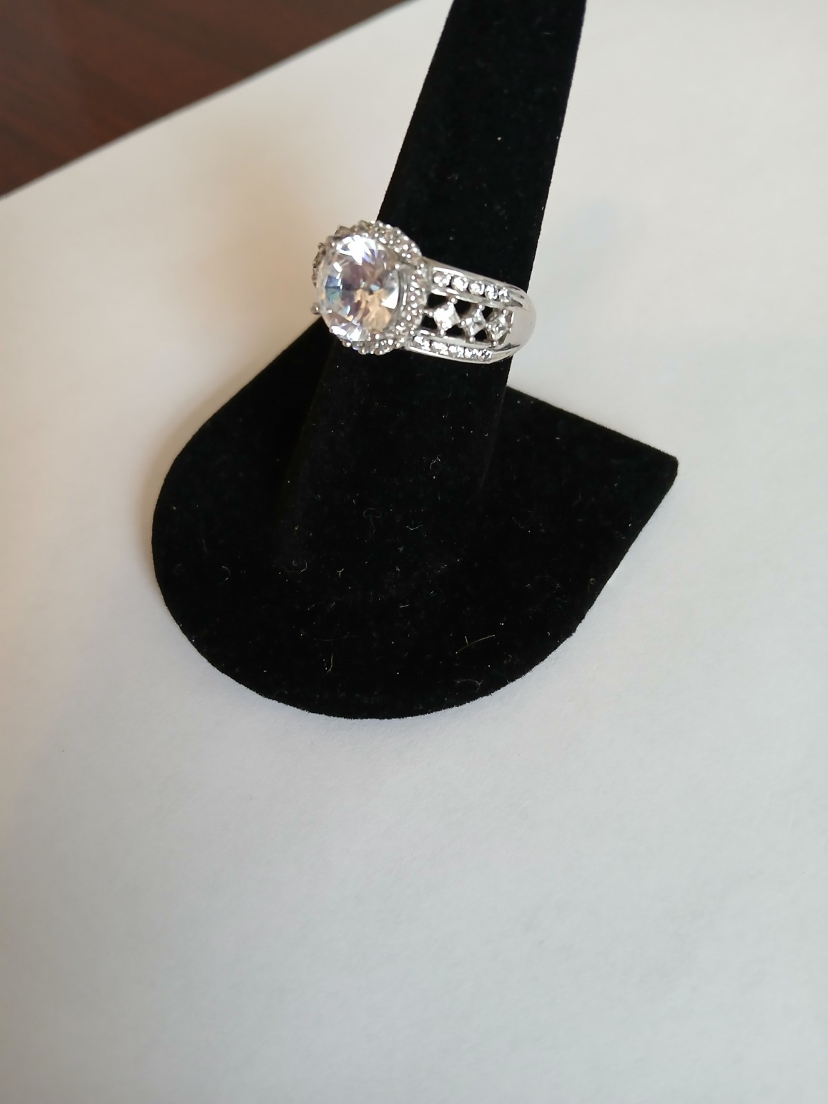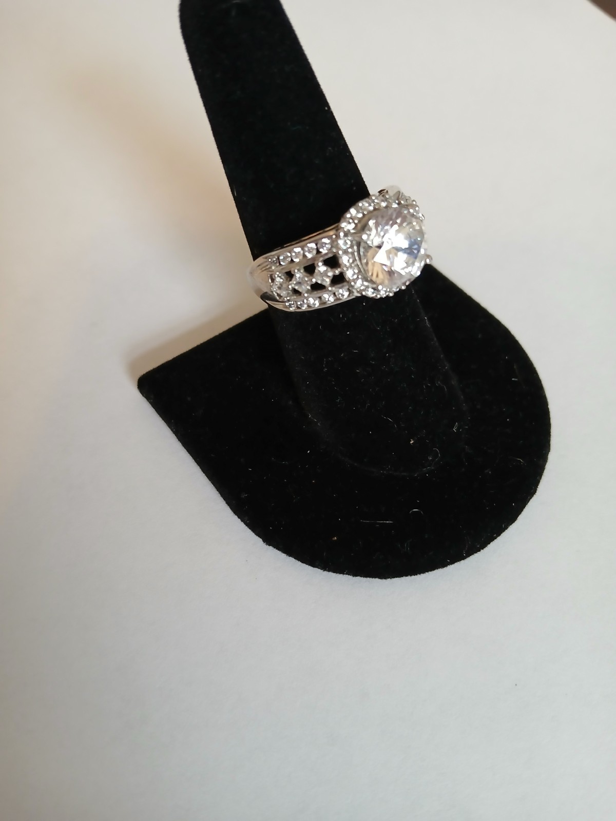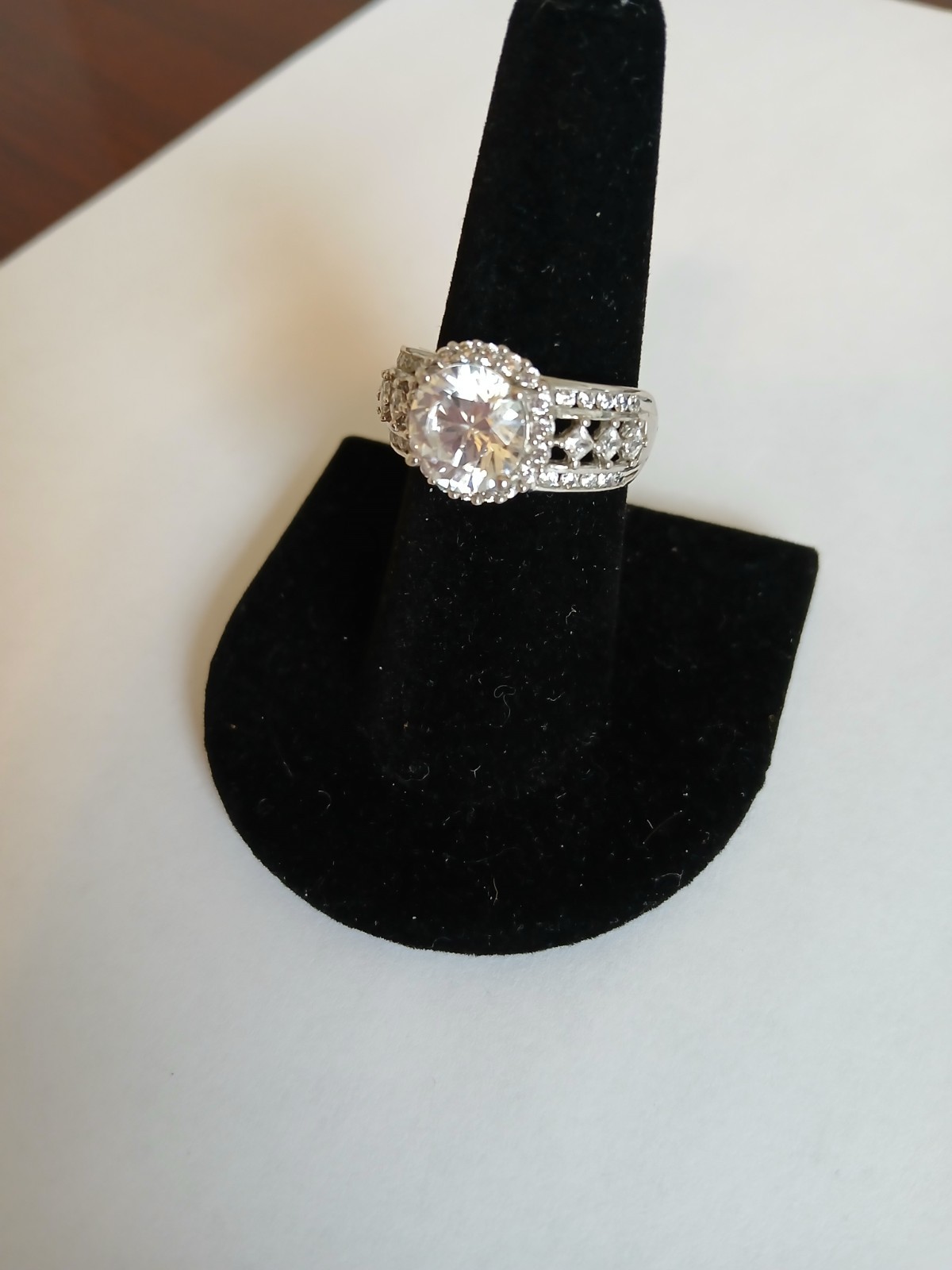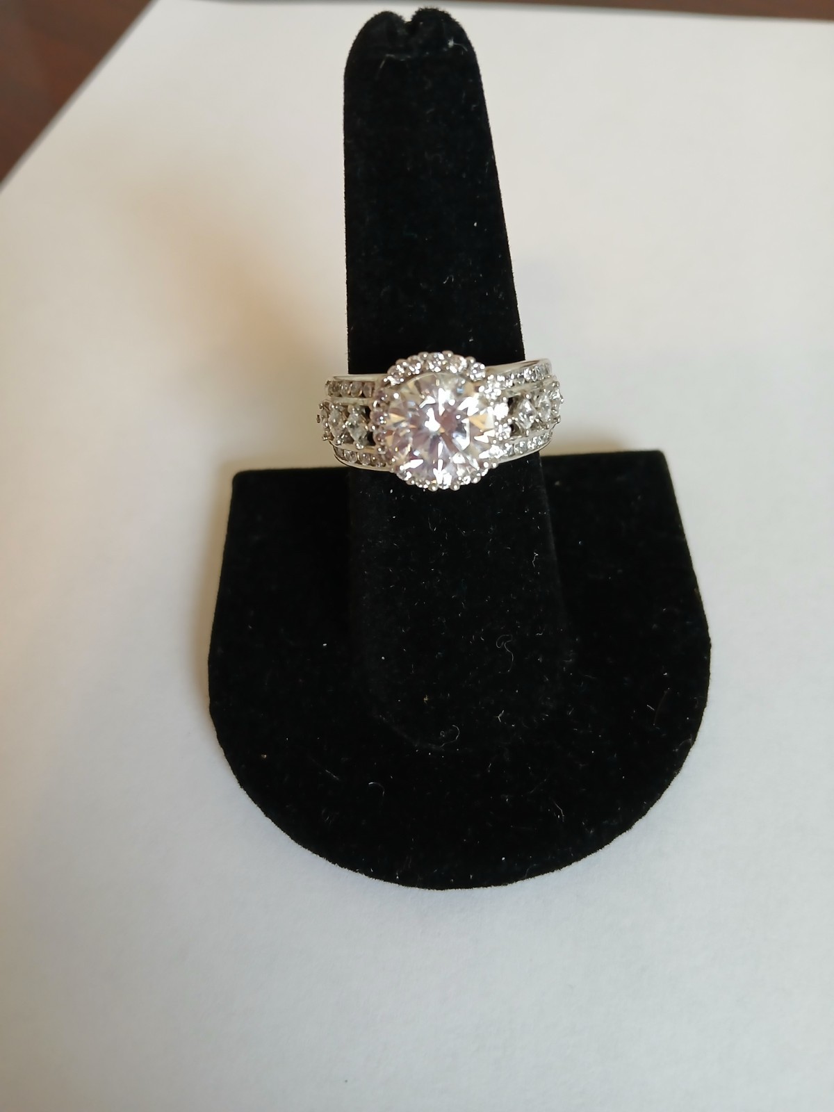 как выглядит STERLING SILVER CUBIC ZIRCONIA WEDDING RING SIZE 8 фото