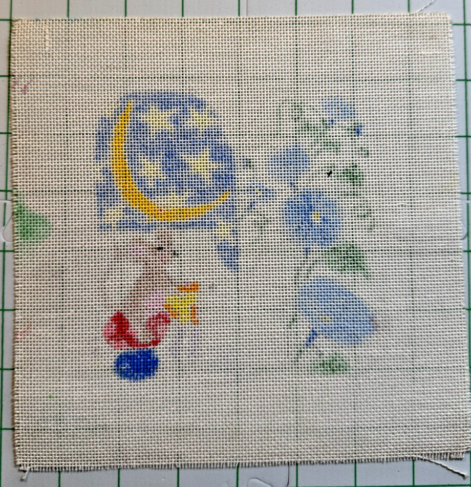 Monogram M Flowers Moon Mouse 3543 Hand painted Needlepoint Canvas