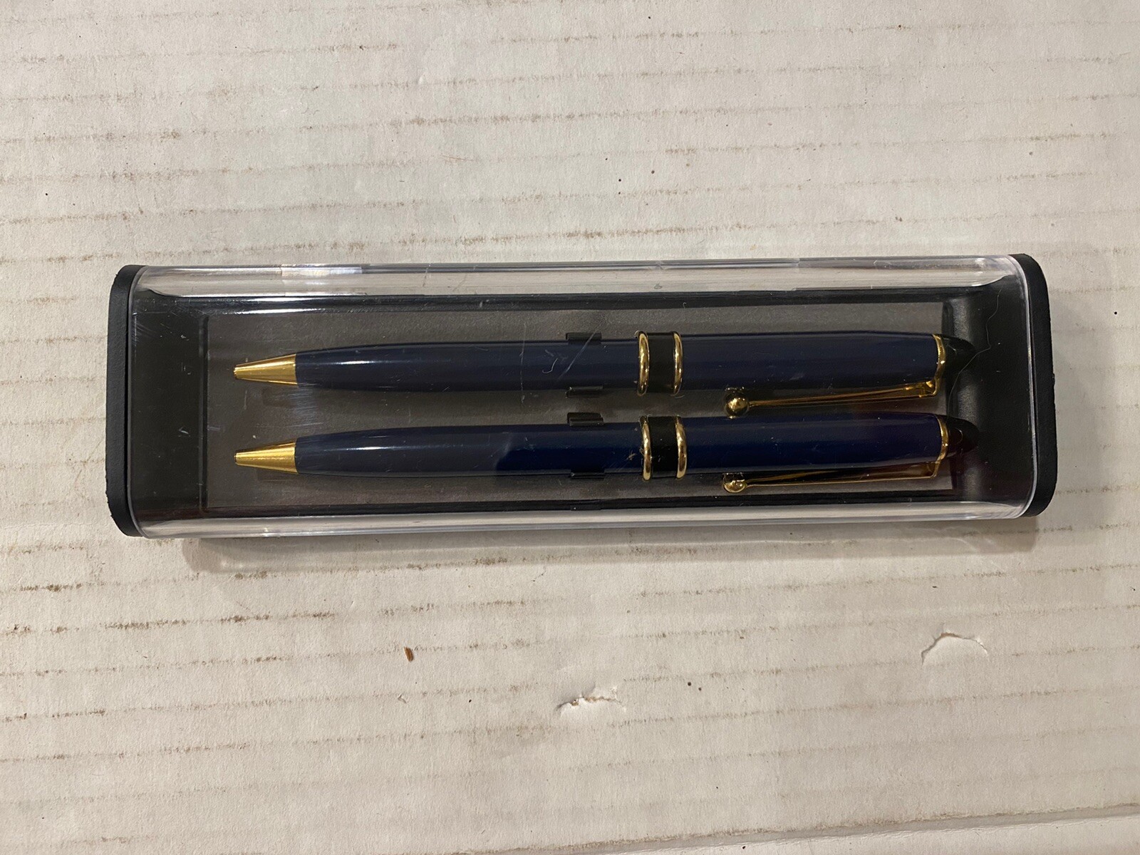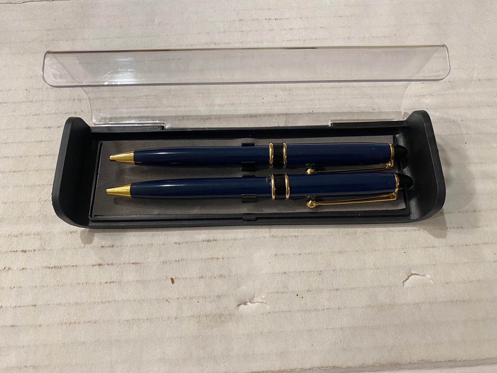 • Blue Matching Pen Set W/ Gold Accents In Case Bx2