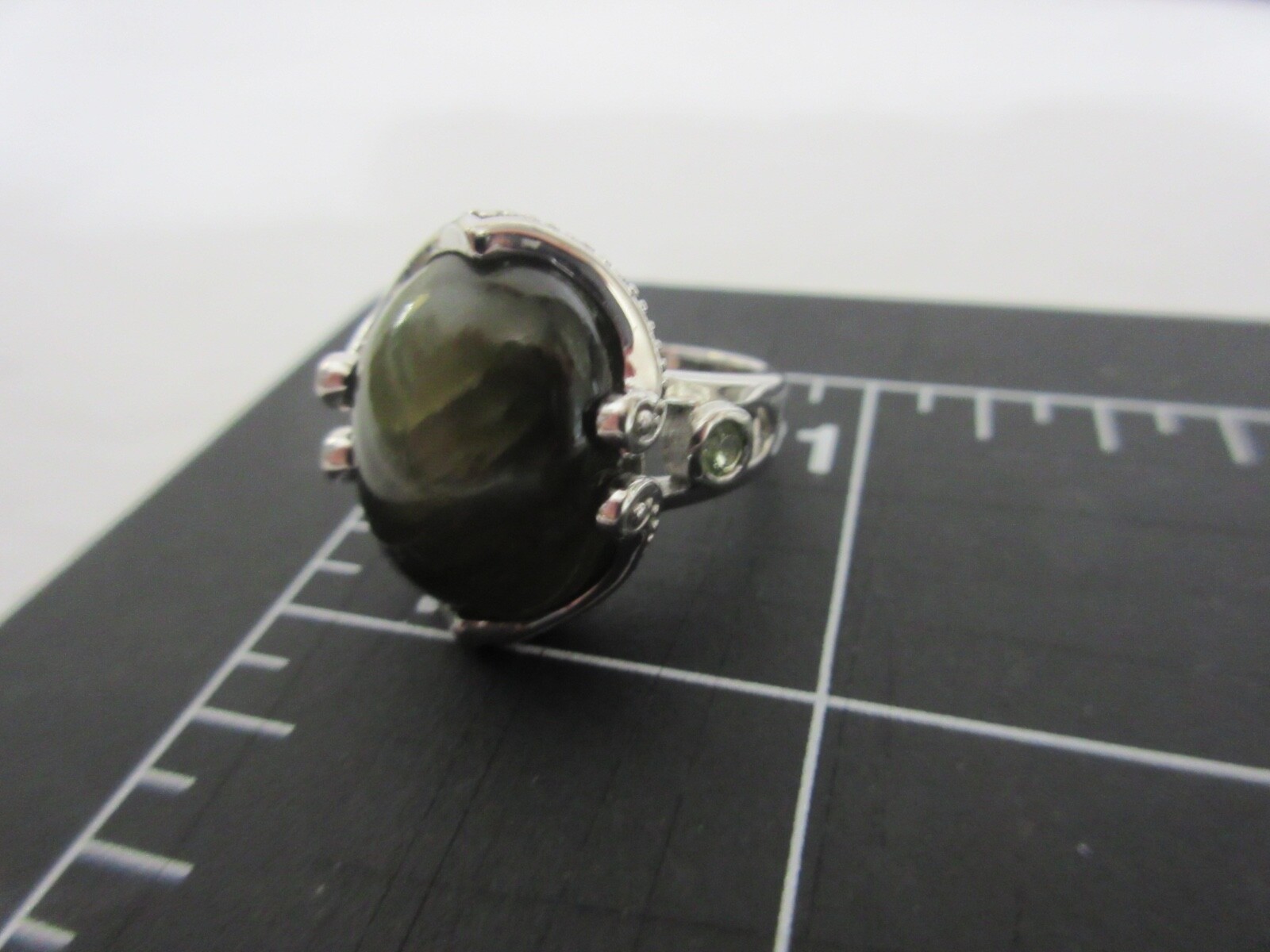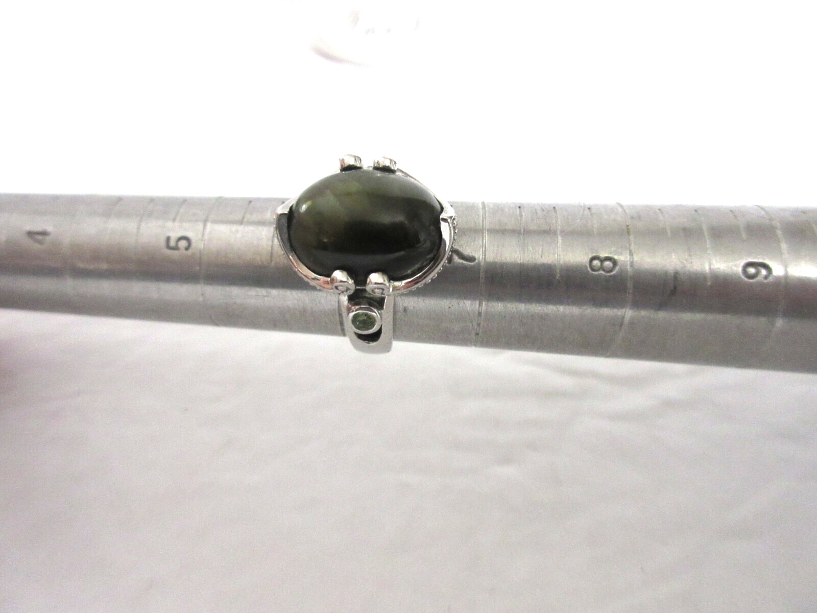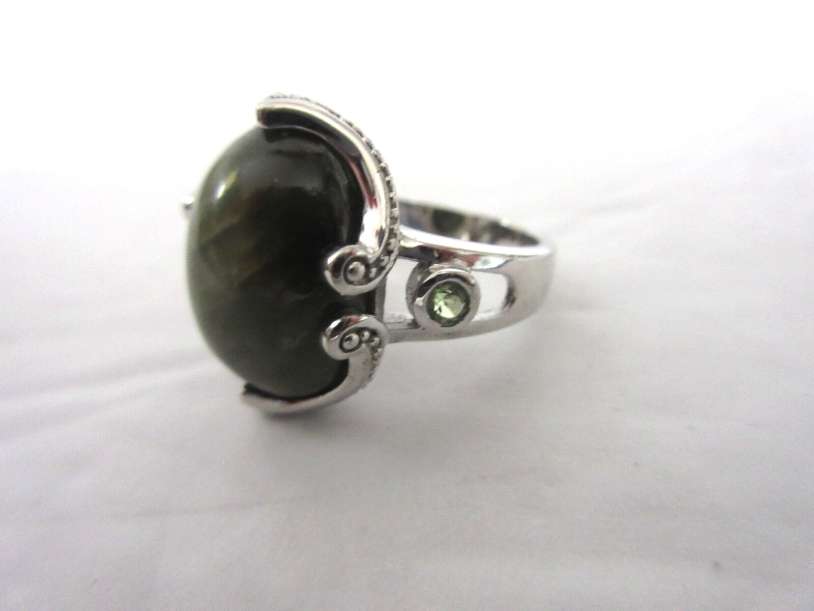 как выглядит Sterling Silver Olive Green Gemstone Pale Green Ring Size 6.25 6.9 grams фото