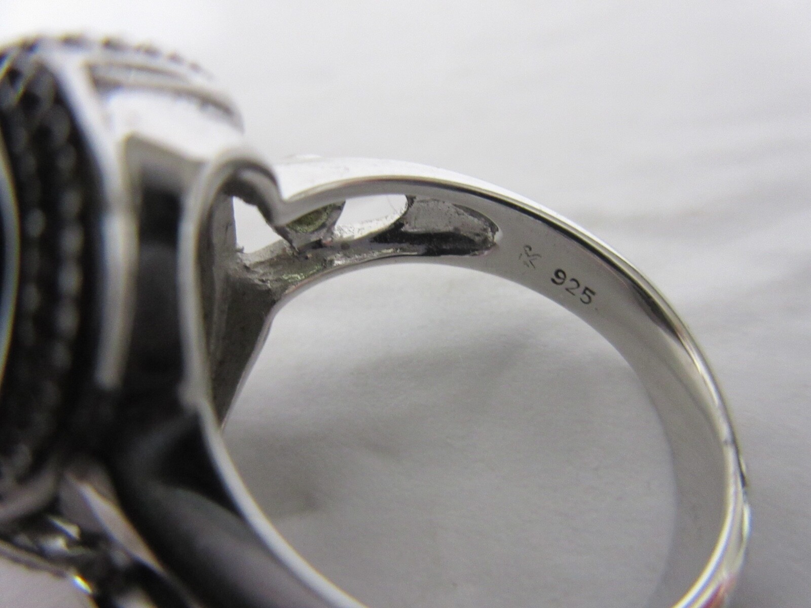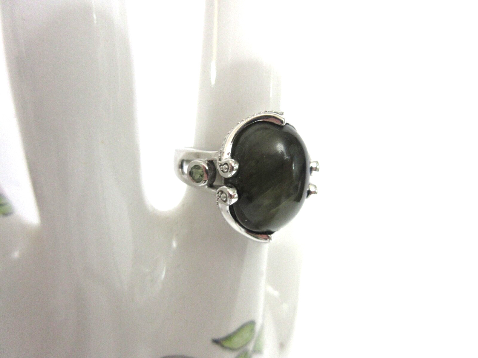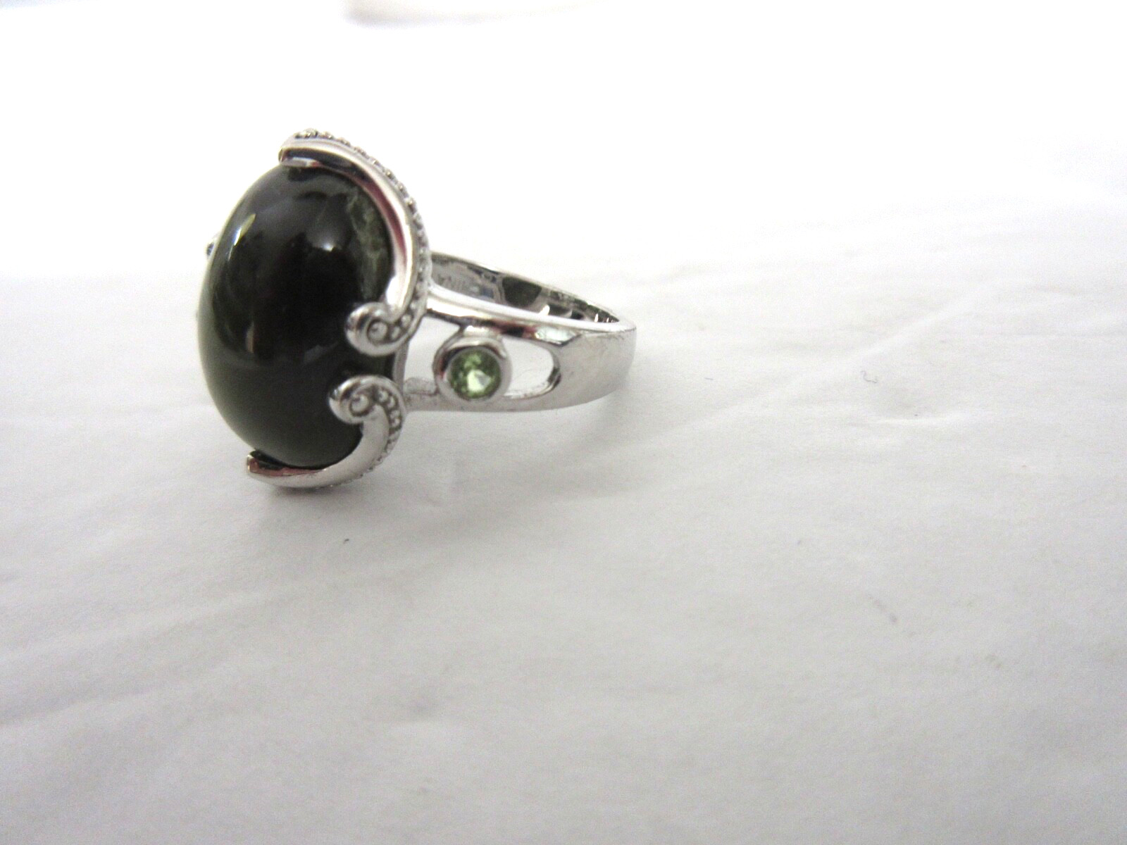как выглядит Sterling Silver Olive Green Gemstone Pale Green Ring Size 6.25 6.9 grams фото