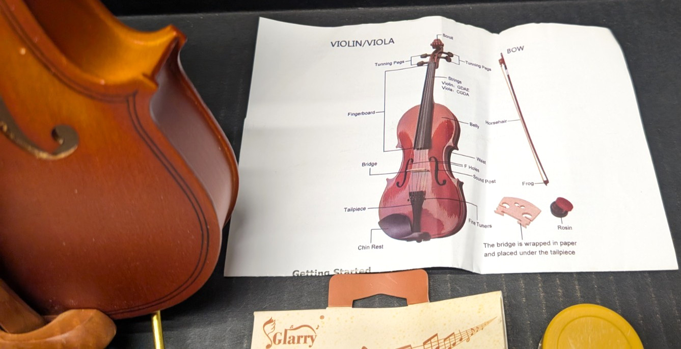 как выглядит 1/4 Size Acoustic Violin, Case, Bow, Shoulder Rest and Natural Rosin For Kids фото