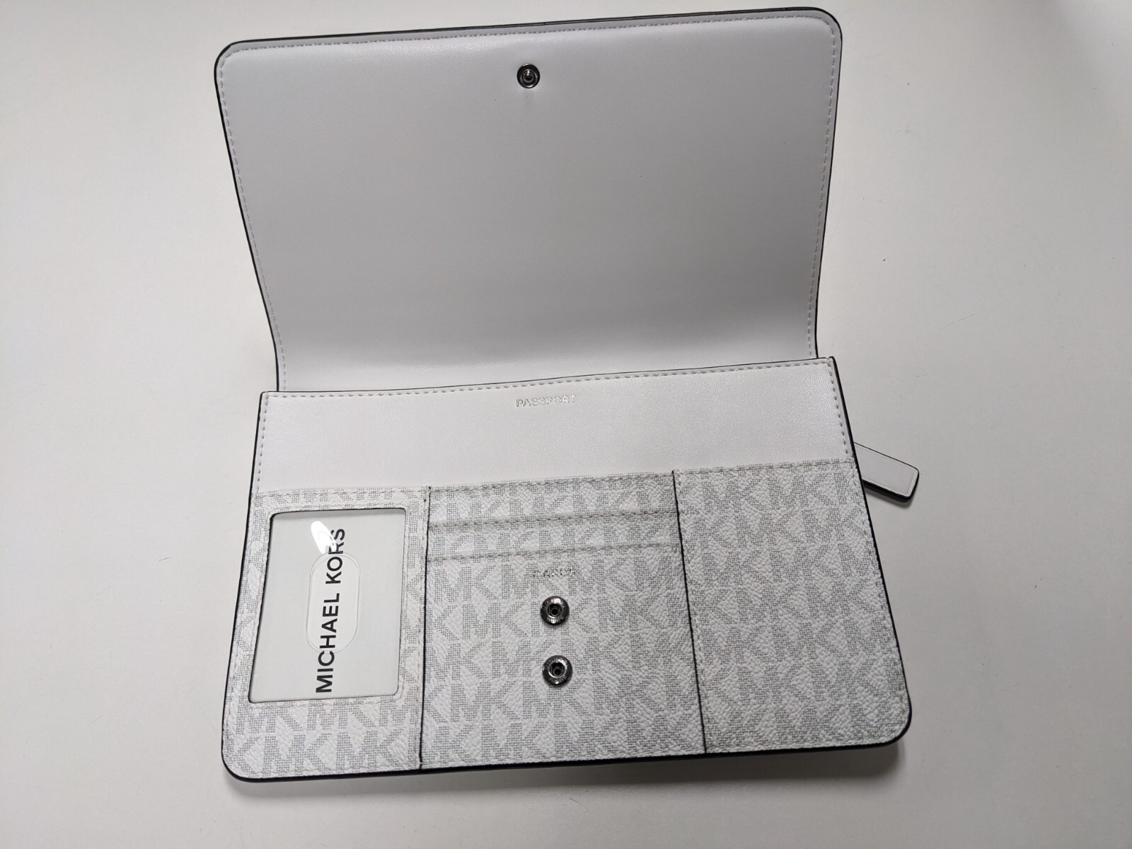 MICHAEL KORS Cooper Large Embellished Signature Logo Travel Wallet WHITE