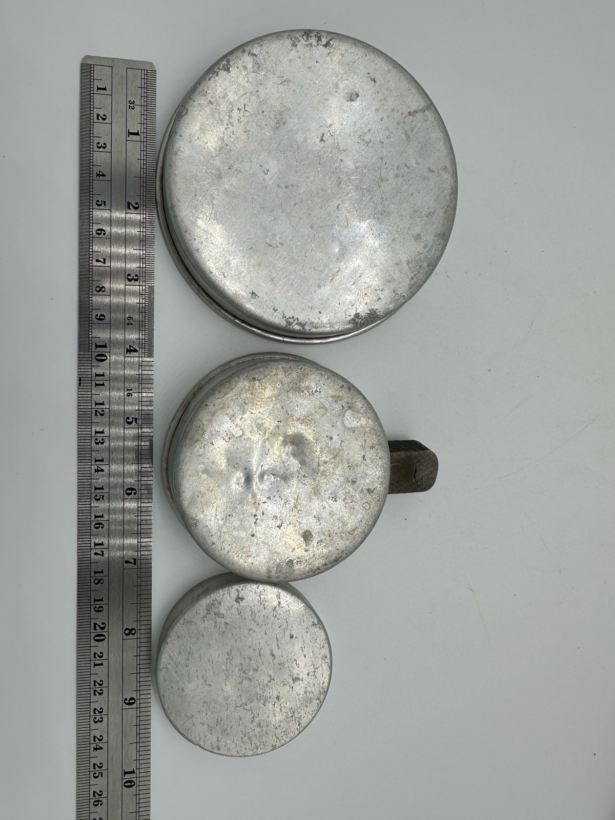 как выглядит Vintage Lot Of Metal Childrens Play Dishes Cookware Aluminum Wood Cake Pan фото