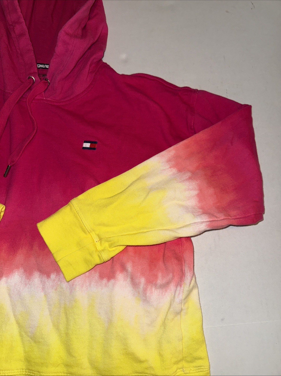 Tommy Hilfiger Sport Hoodie Womens M Tie Die Yellow To Pink 100 Cotton