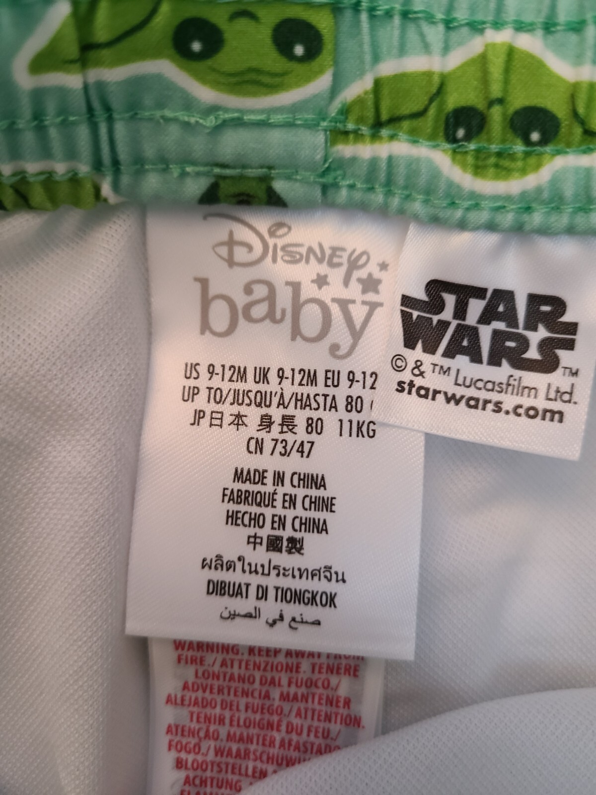 как выглядит Star Wars Grogu Baby Yoda Mandalorian Swim Shorts 9-12M UPF 50 Disney Baby New фото