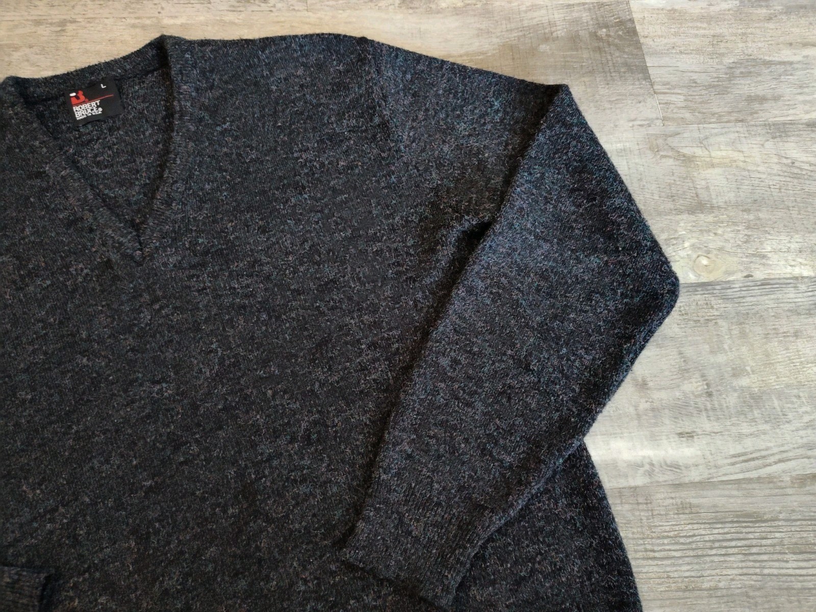 как выглядит Vtg Robert Bruce V Neck Flecked Sweater Mens M/L Gray Wool Blend USA Made фото