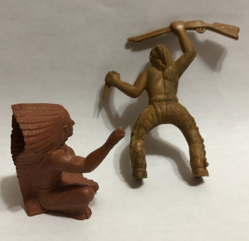 как выглядит 1953 MARX Sitting Indian Chief Cavalry Man, Clay/Brown 60mm, Soft Plastic фото