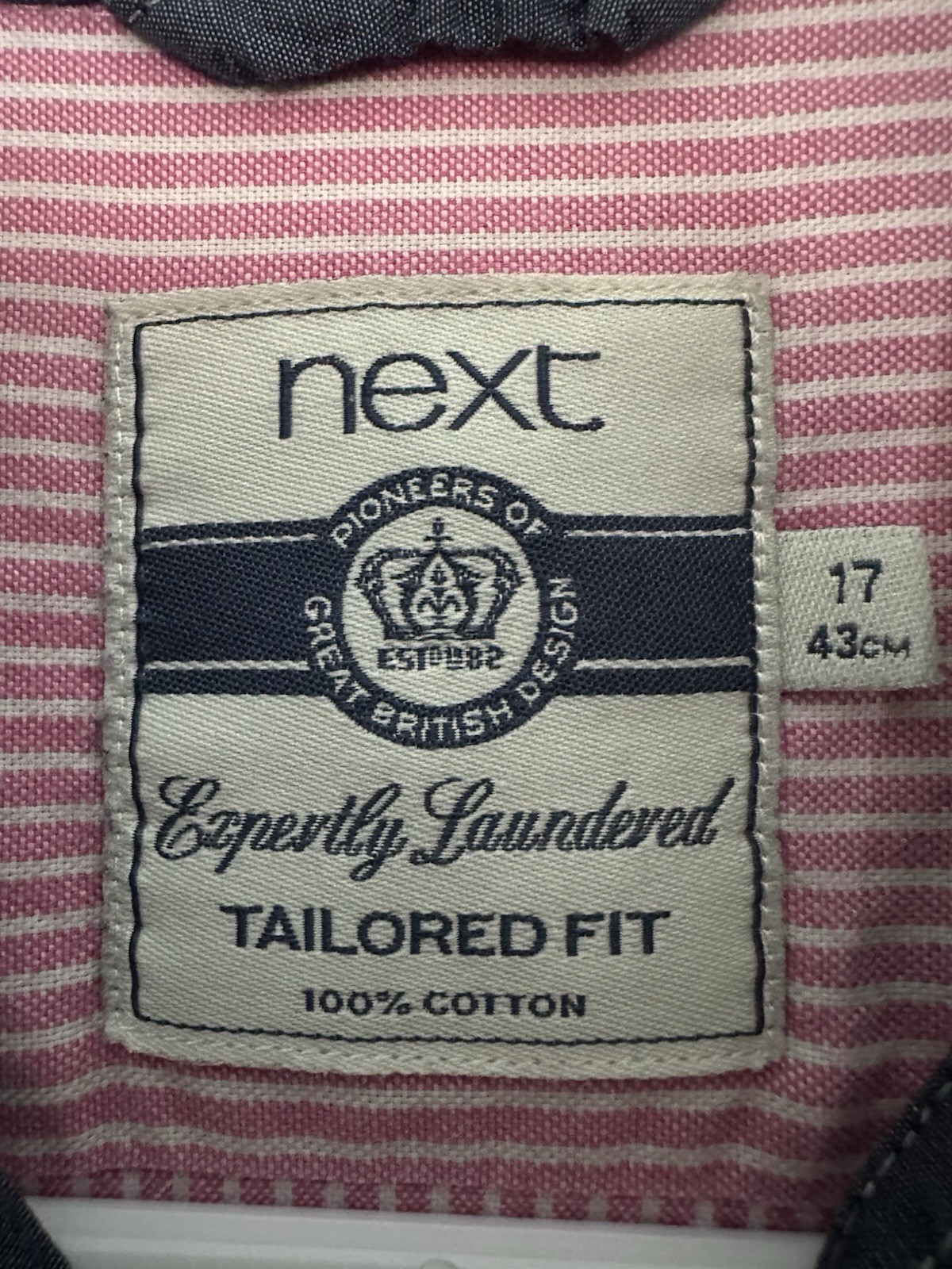 Next Men s 100 Cotton Long Sleeve Pink Pin Striped Button Down Shirt I28