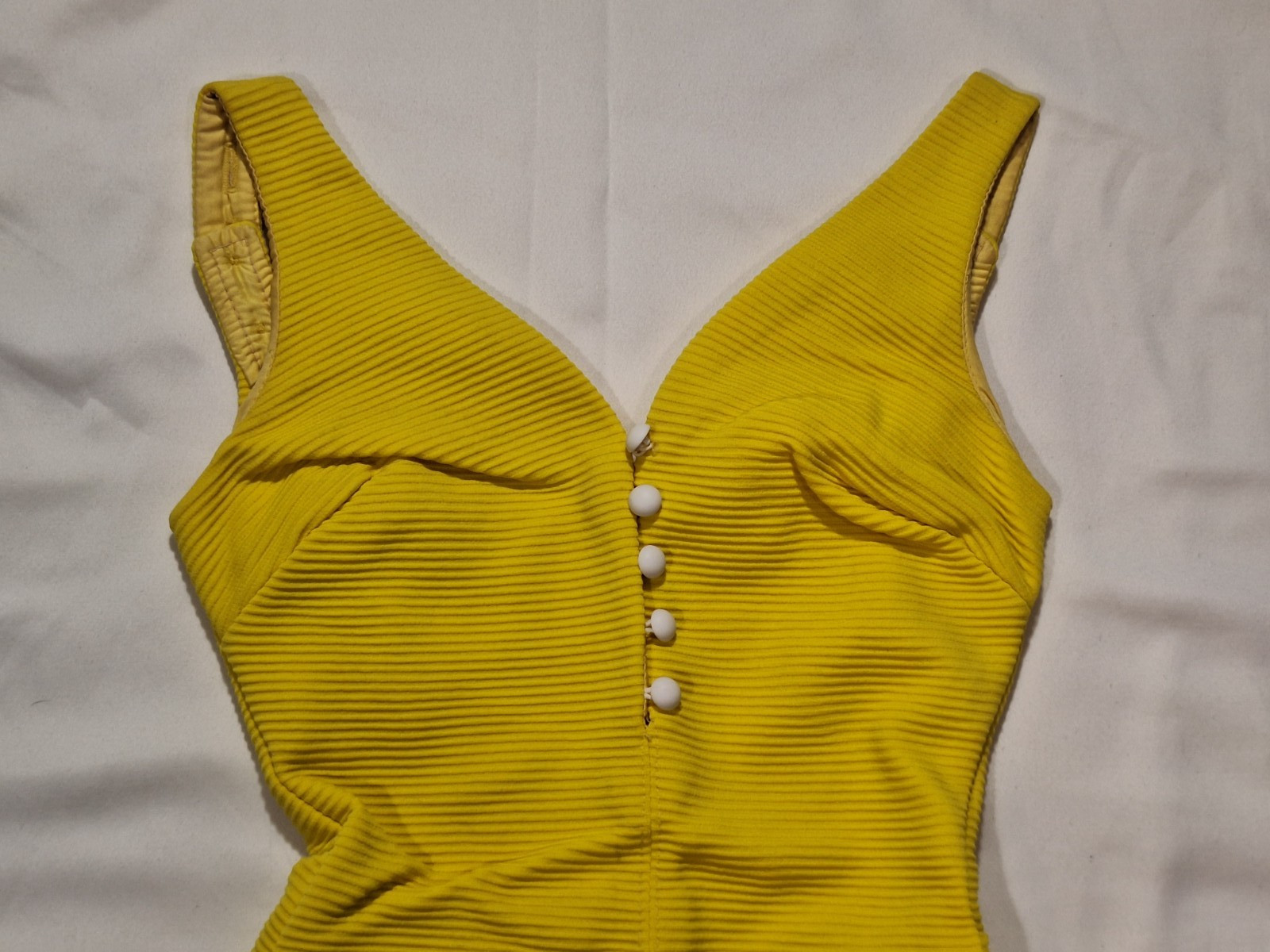 Cole of California Vintage One Piece Ribbed Yellow Swimsuit Size: 8