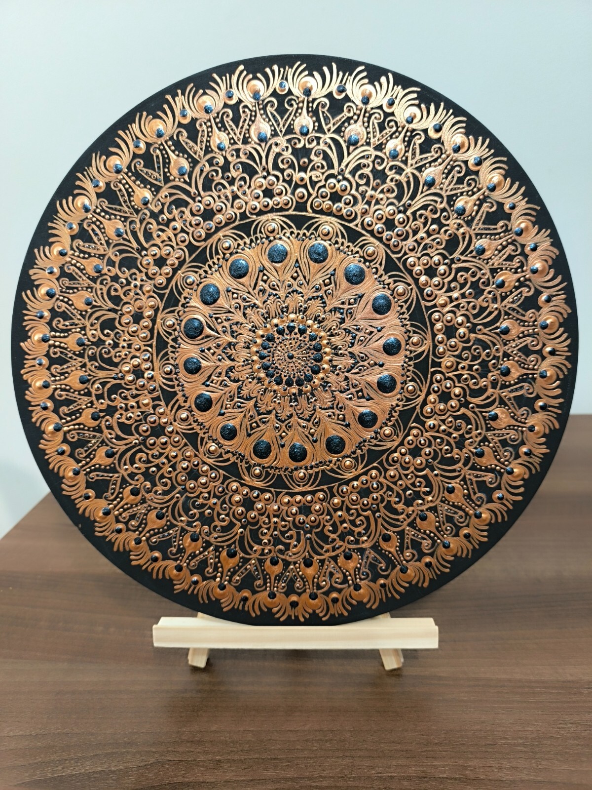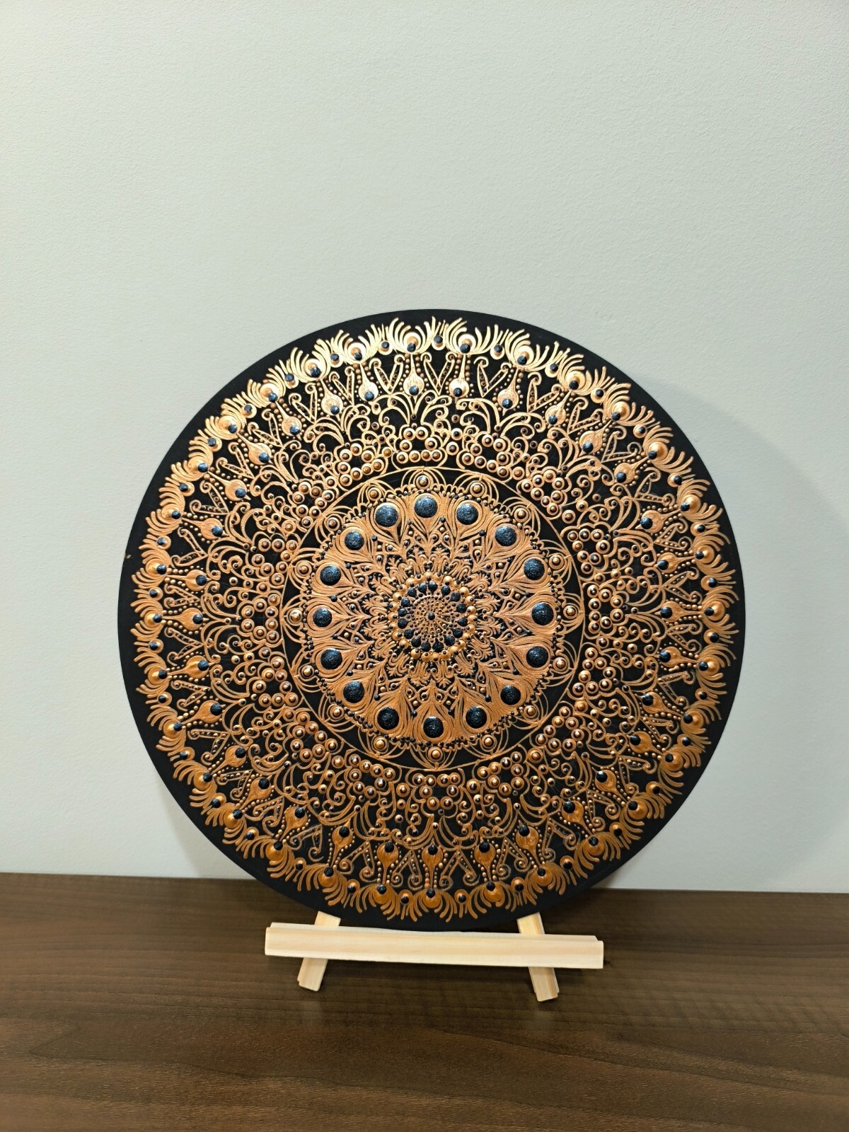• hand painted mandala with metallic colors