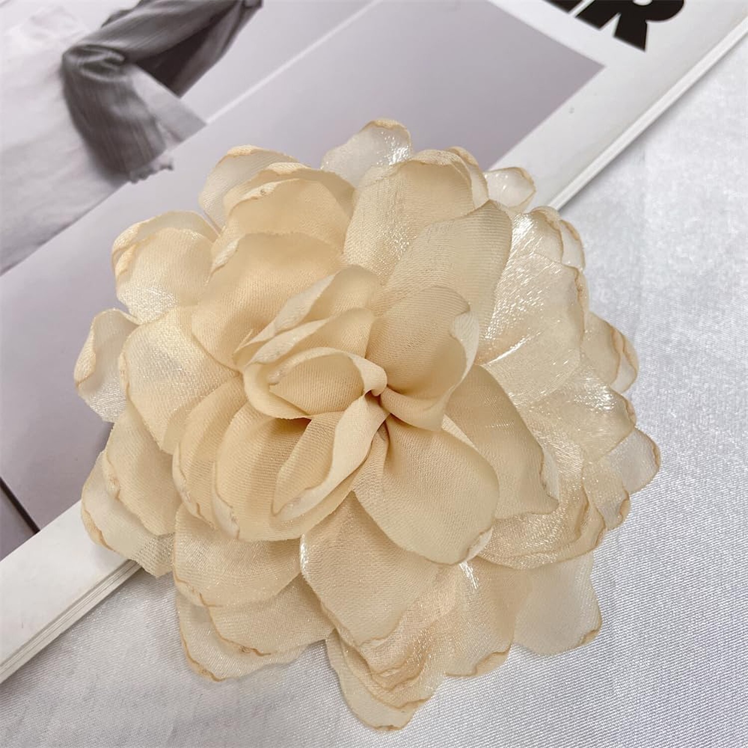 как выглядит Dainty Camellia Flower Large Brooch Lapel Pins Handmade Fabric Flower Brooche... фото