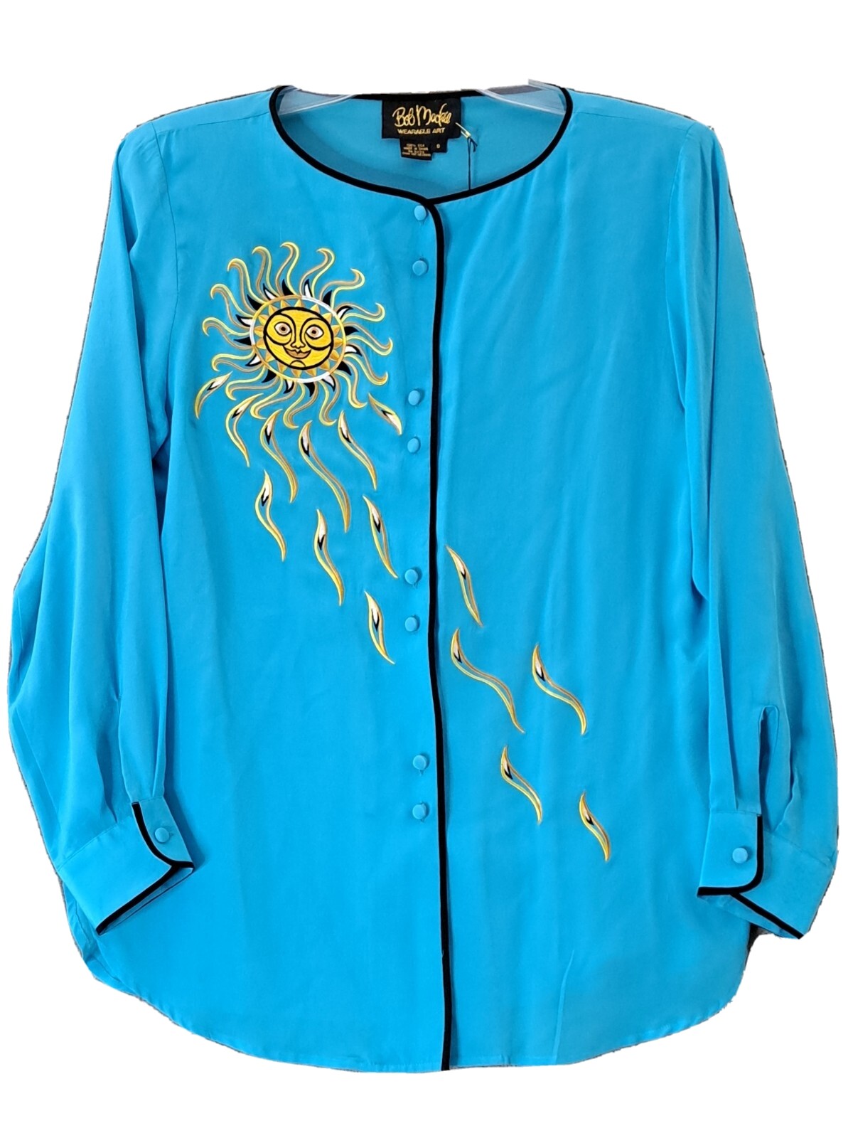 Vintage Bob Mackie Wearable Art Silk Tunic Women S Turquoise Gold Sun Embroidery