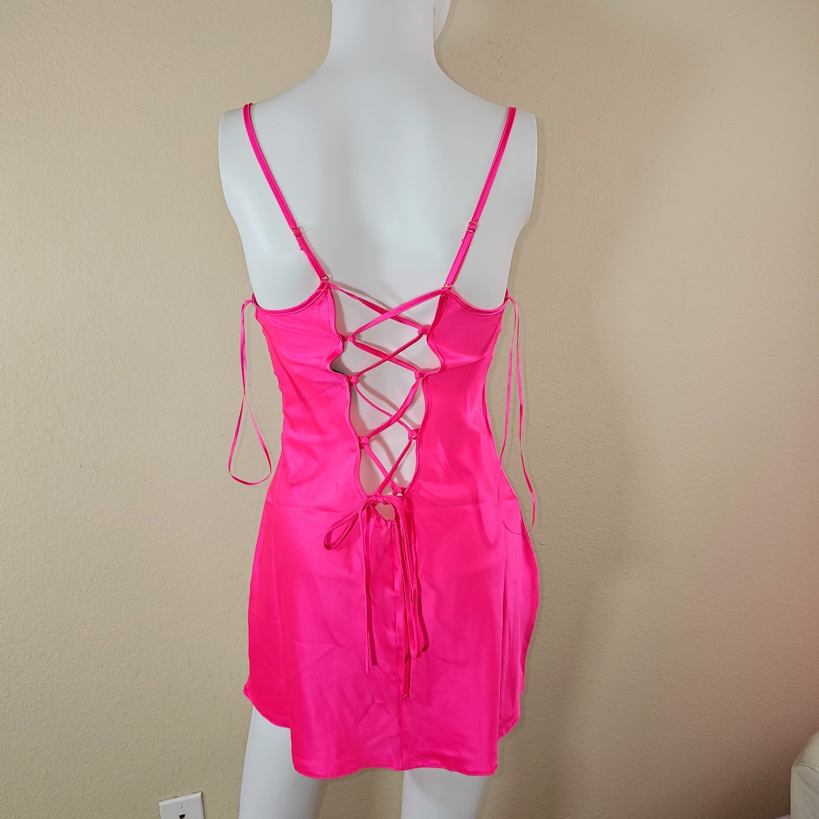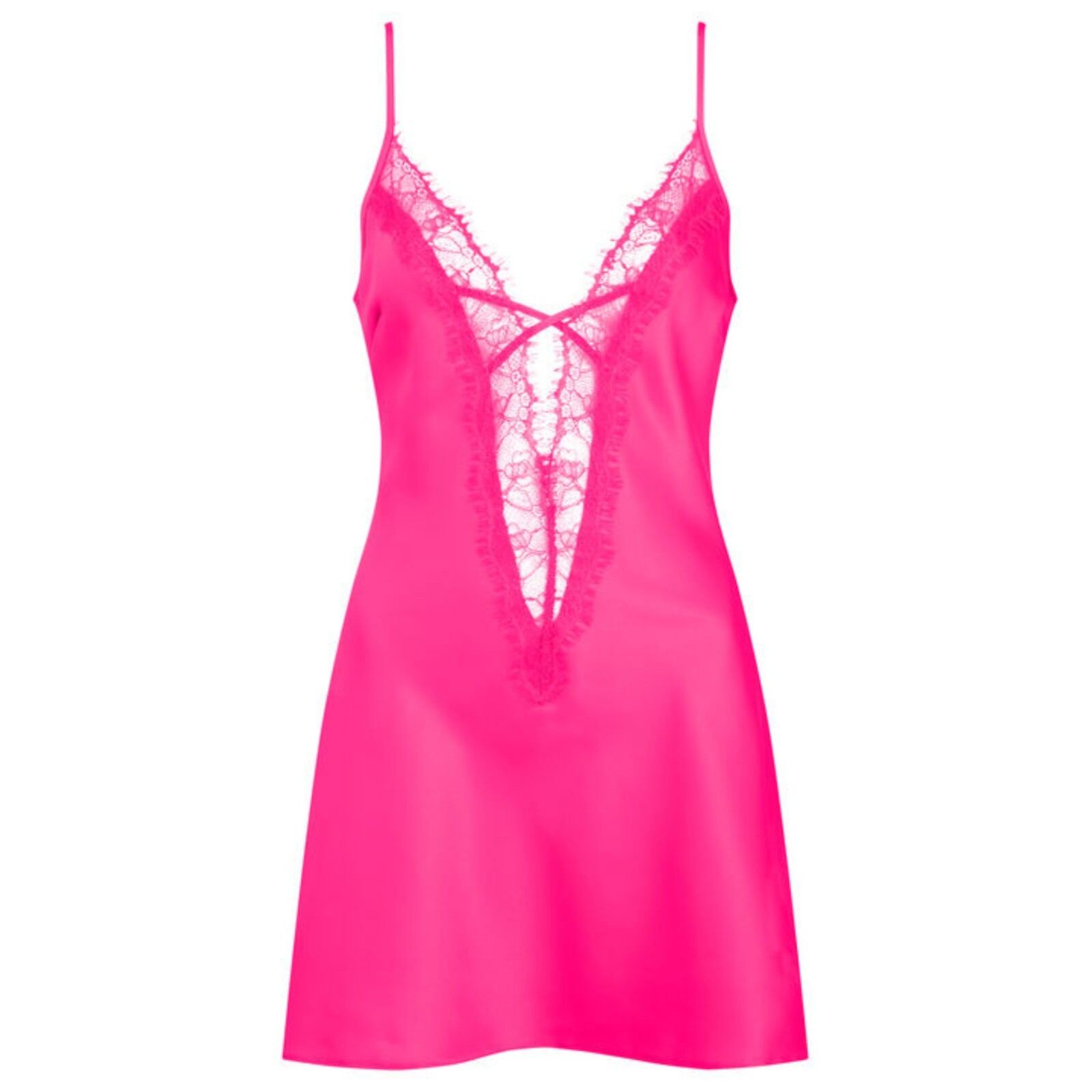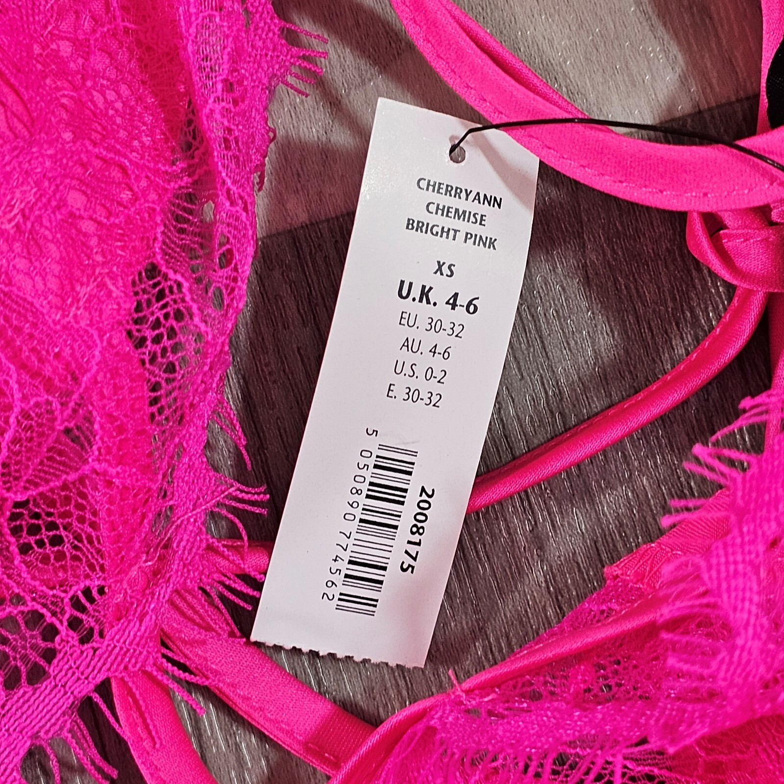 NWT Ann Summers Cherryann Bright Pink Satin Lace Chemise Nightie Size XS
