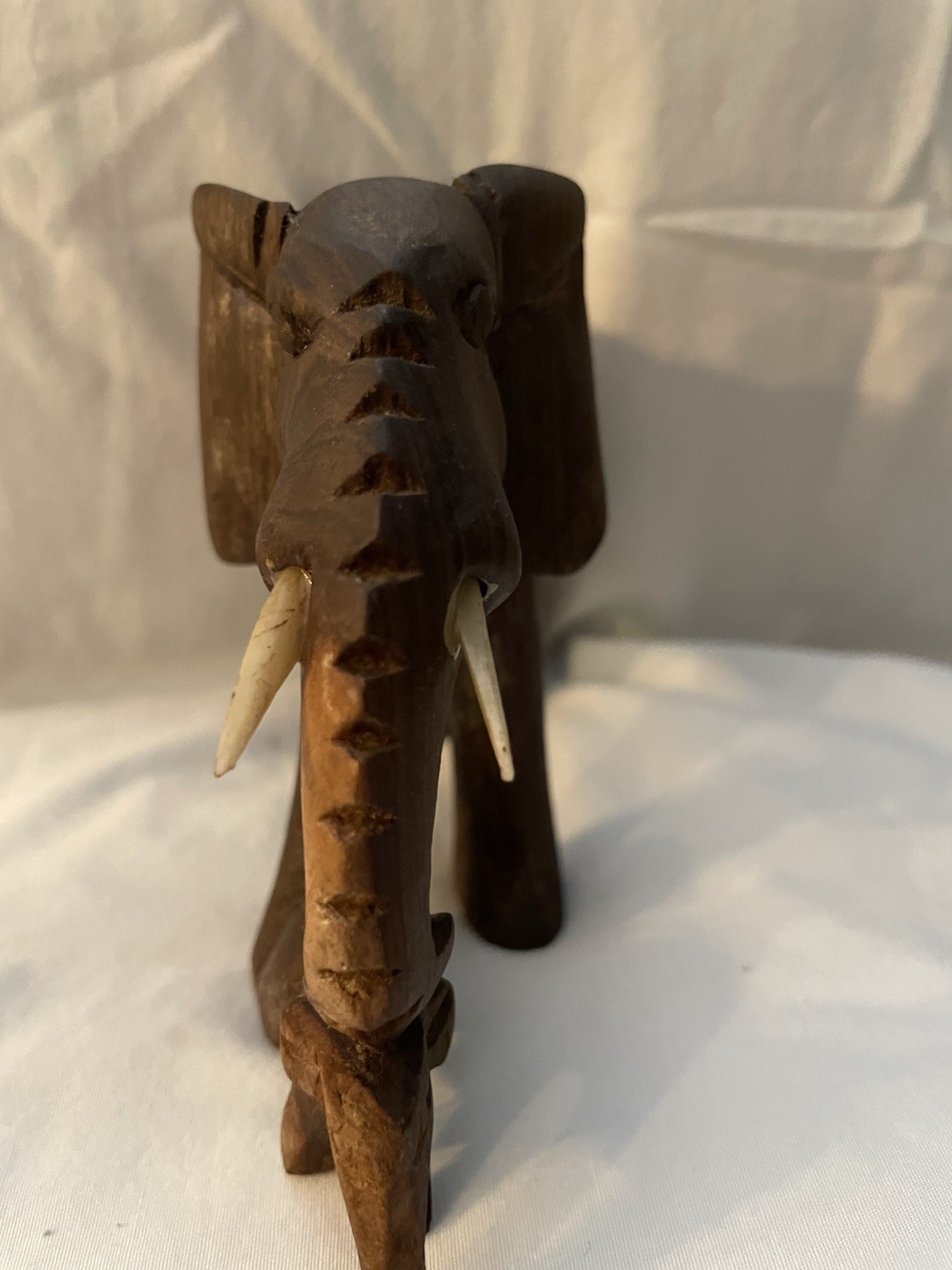 Vintage Hand Carved Elephant Mama and Baby Wooden Animals Collectibles