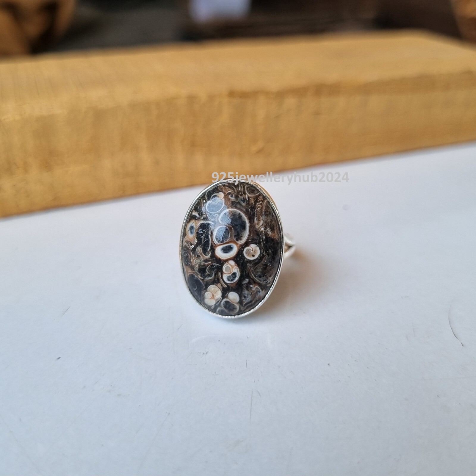 как выглядит Unique Turritella Agate Gemstone Ring 925 Sterling Silver Designer Ring PG5534 фото