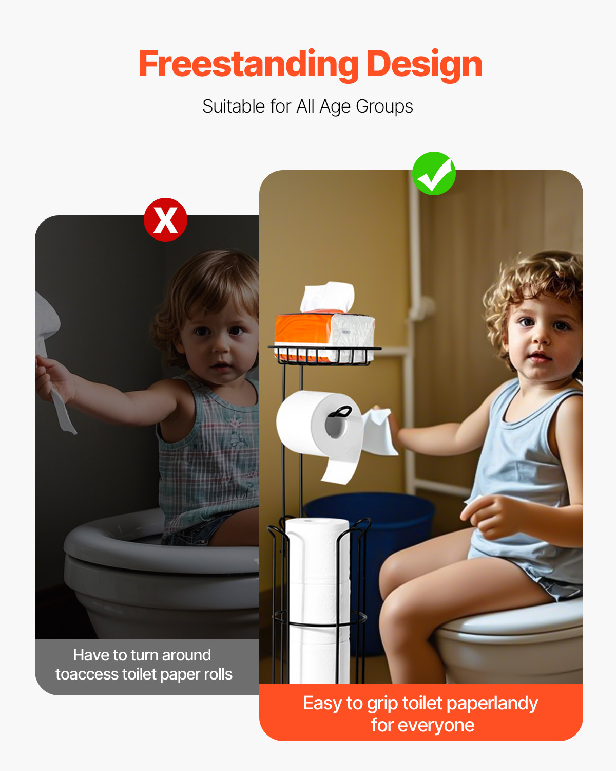 Toilet Paper Holder with Shelf Mega Rolls Wall Mounted/Free Standing Roll Holder