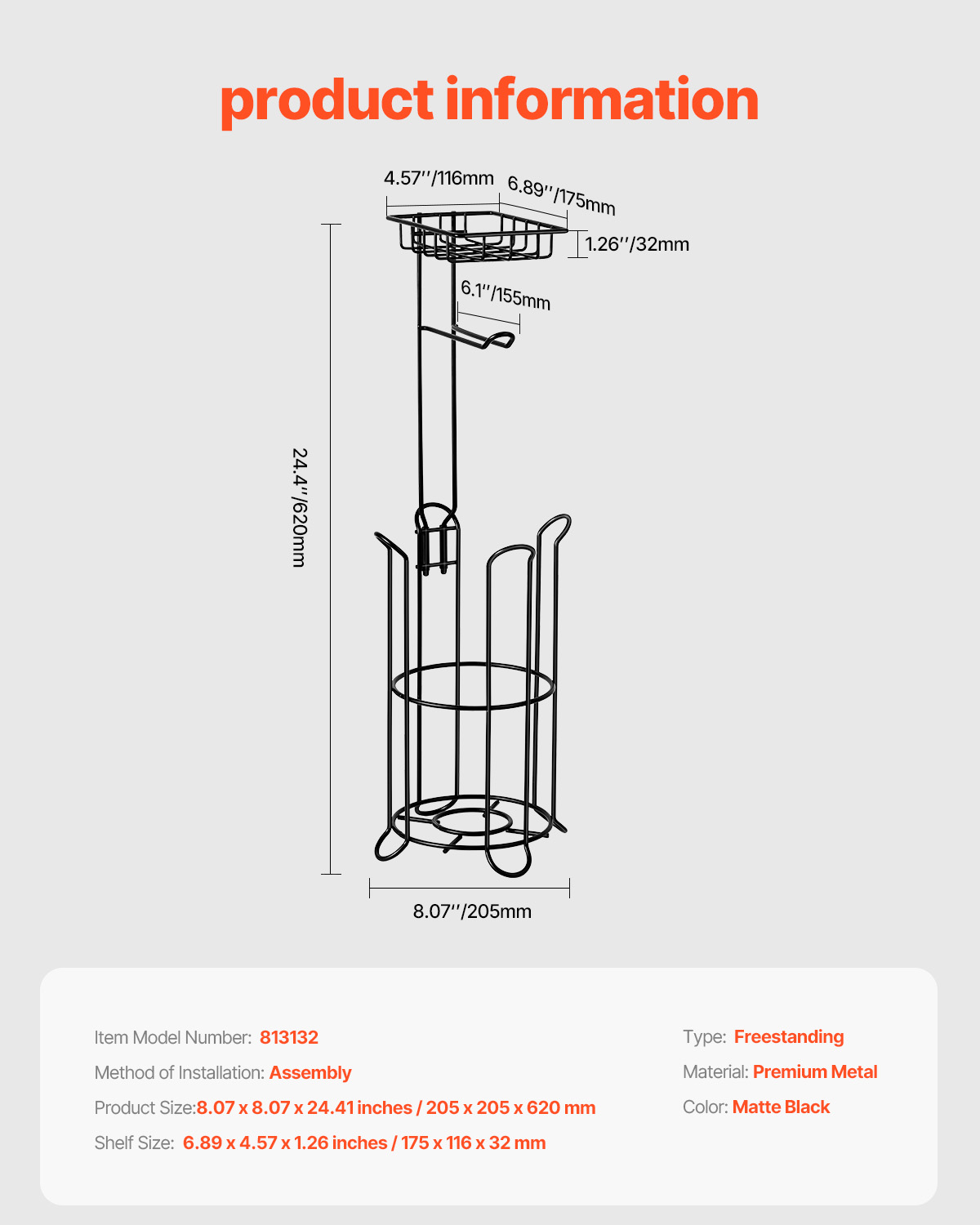 как выглядит Toilet Paper Holder with Shelf Mega Rolls Wall Mounted/Free Standing Roll Holder фото