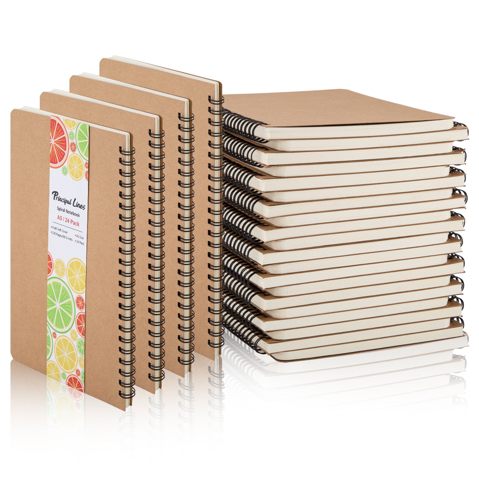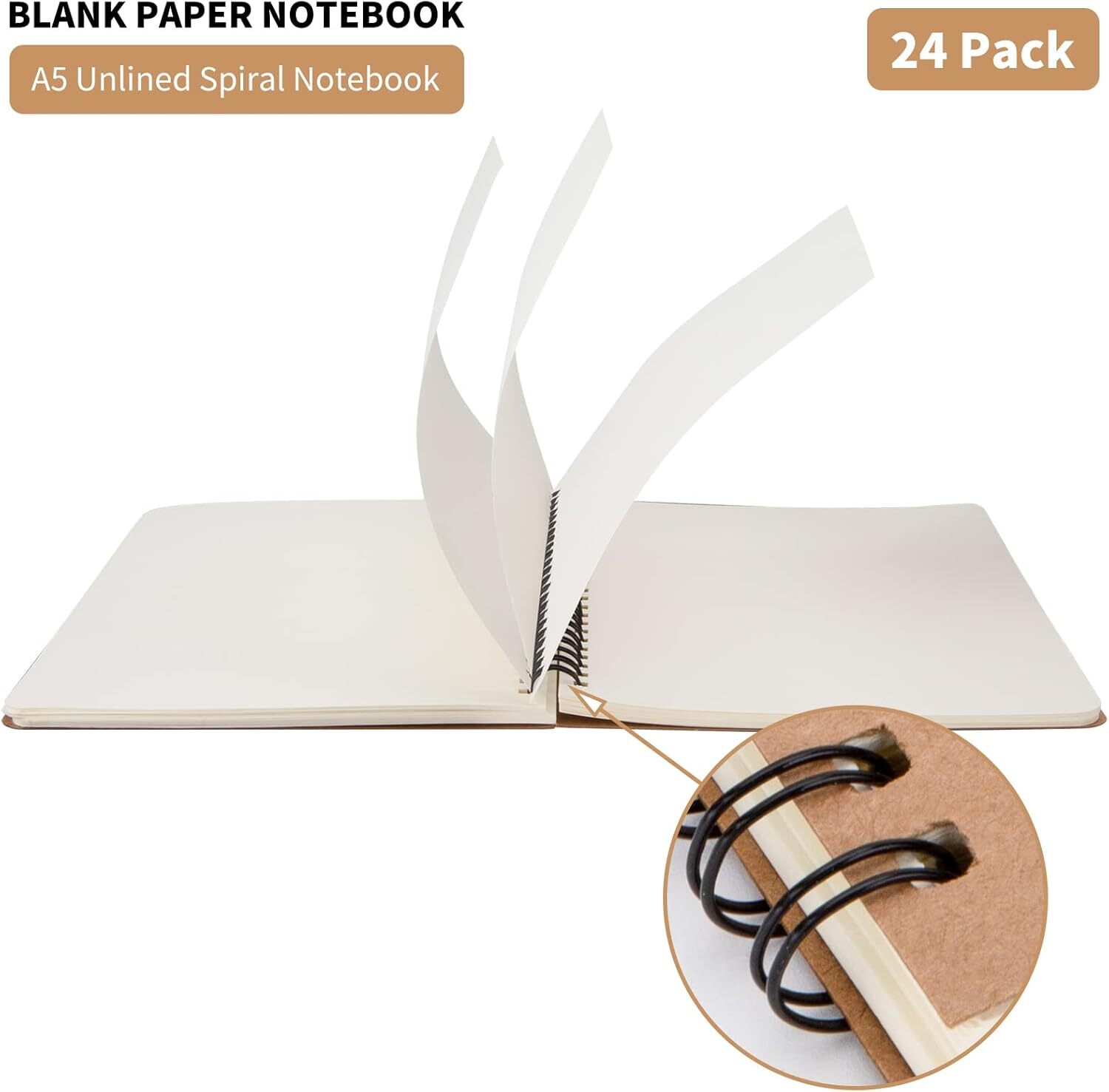 24 Pack Hard Cover A5 Spiral Journal Unruled Notebook 60 Sheets Each 5.8x8.25 In