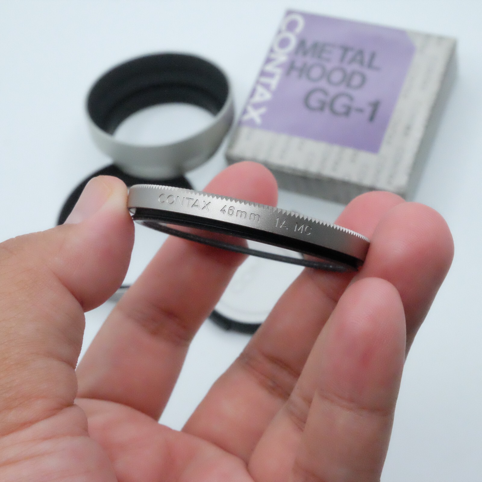 как выглядит Set CONTAX 46mm 1A MC filter / GK-41 46mm Cap/ Metal Hood GG-1 For G1 G2 фото