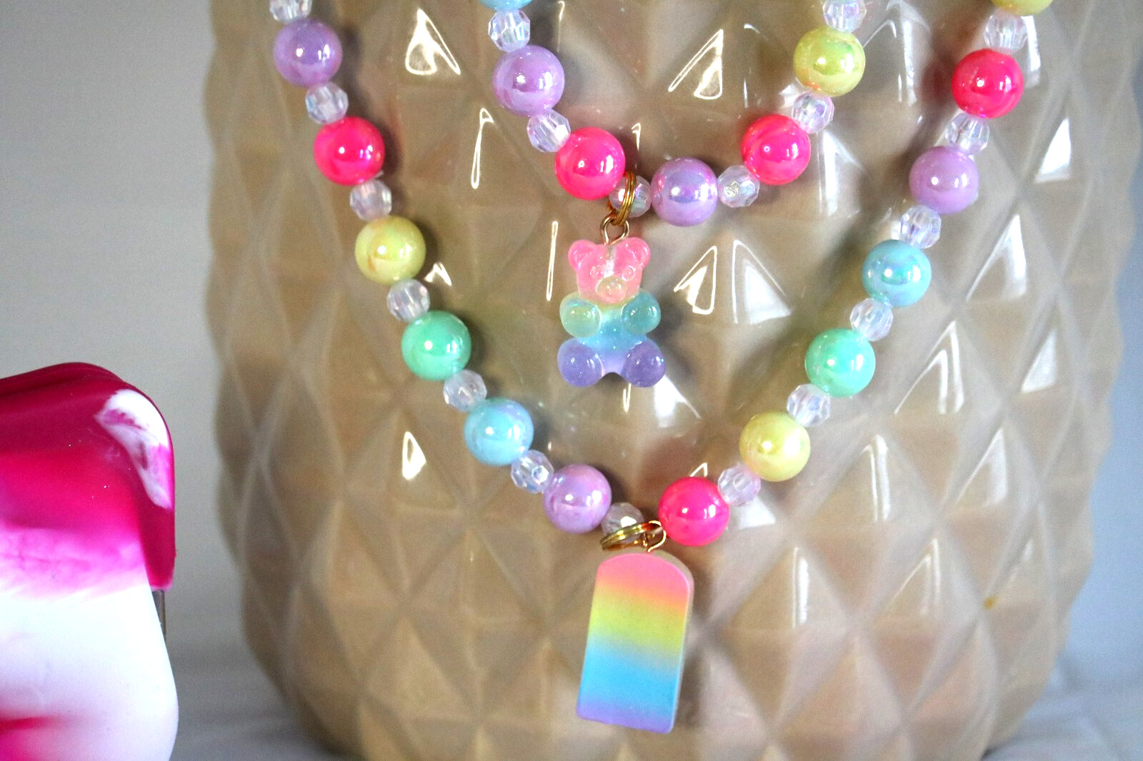 как выглядит Girls Popsicle Beaded Necklace, Ring and Bracelets with Coin Purse Multi set 20 фото