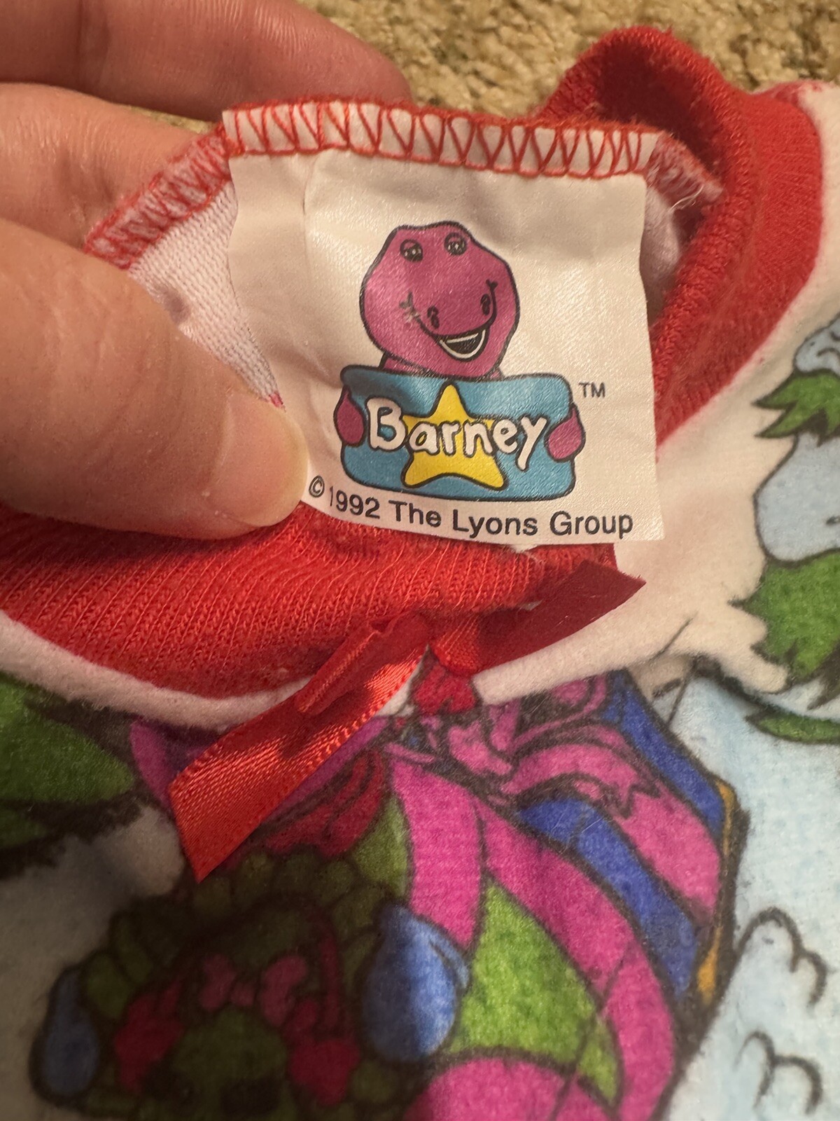 как выглядит Vintage 1992 Barney And Baby Bop Kids Christmas Pajamas 3T фото