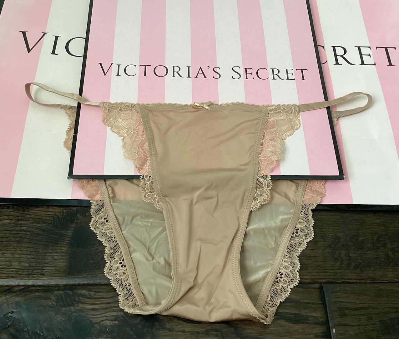 как выглядит NEW Victorias Secret DREAM ANGELS Smooth Mini String Bikini Panty Beige Size M фото