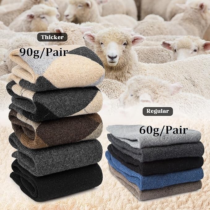 5 Pairs Mens Wool Socks, Soft Cozy Thick Warm Breathable Crew Thermal Socks 6-9