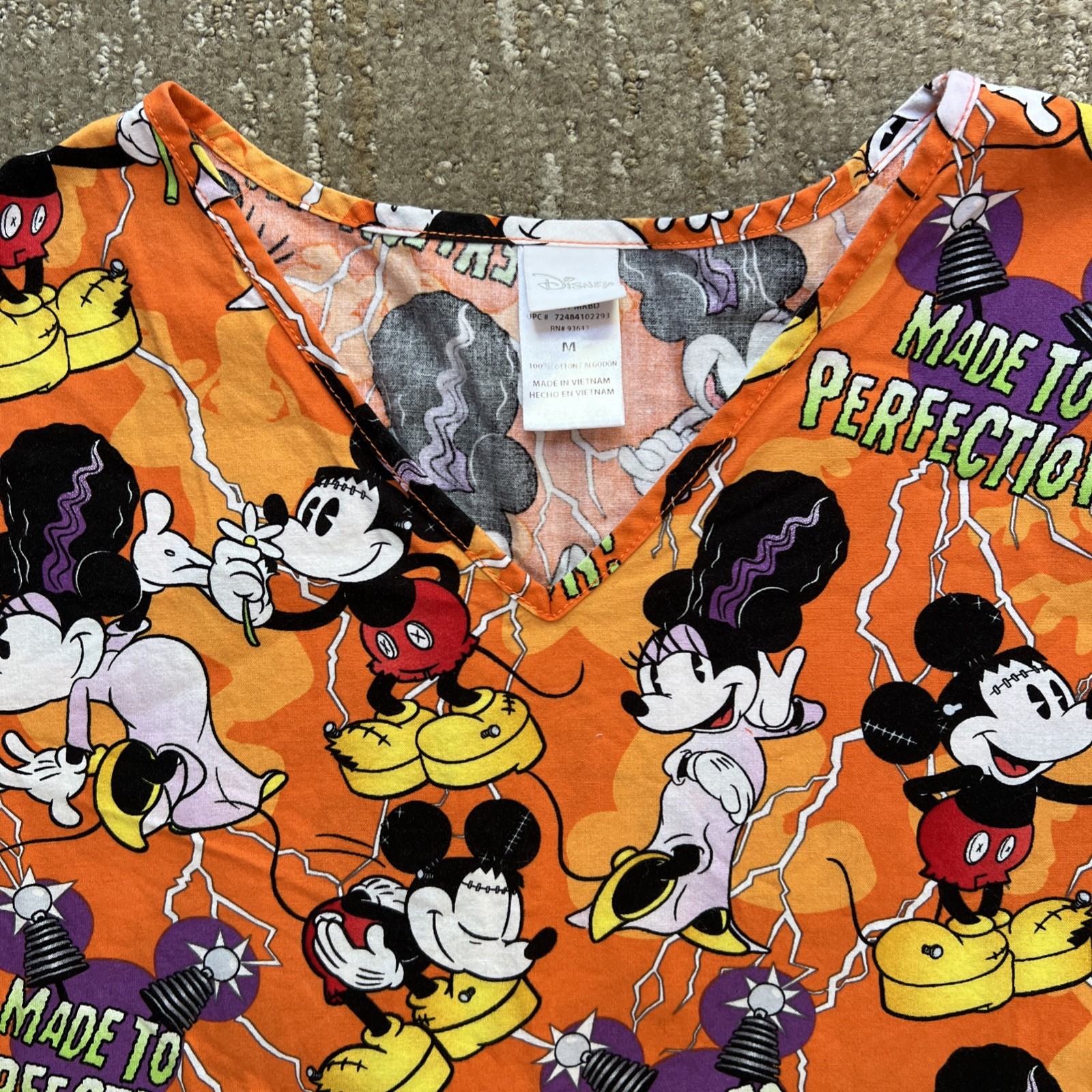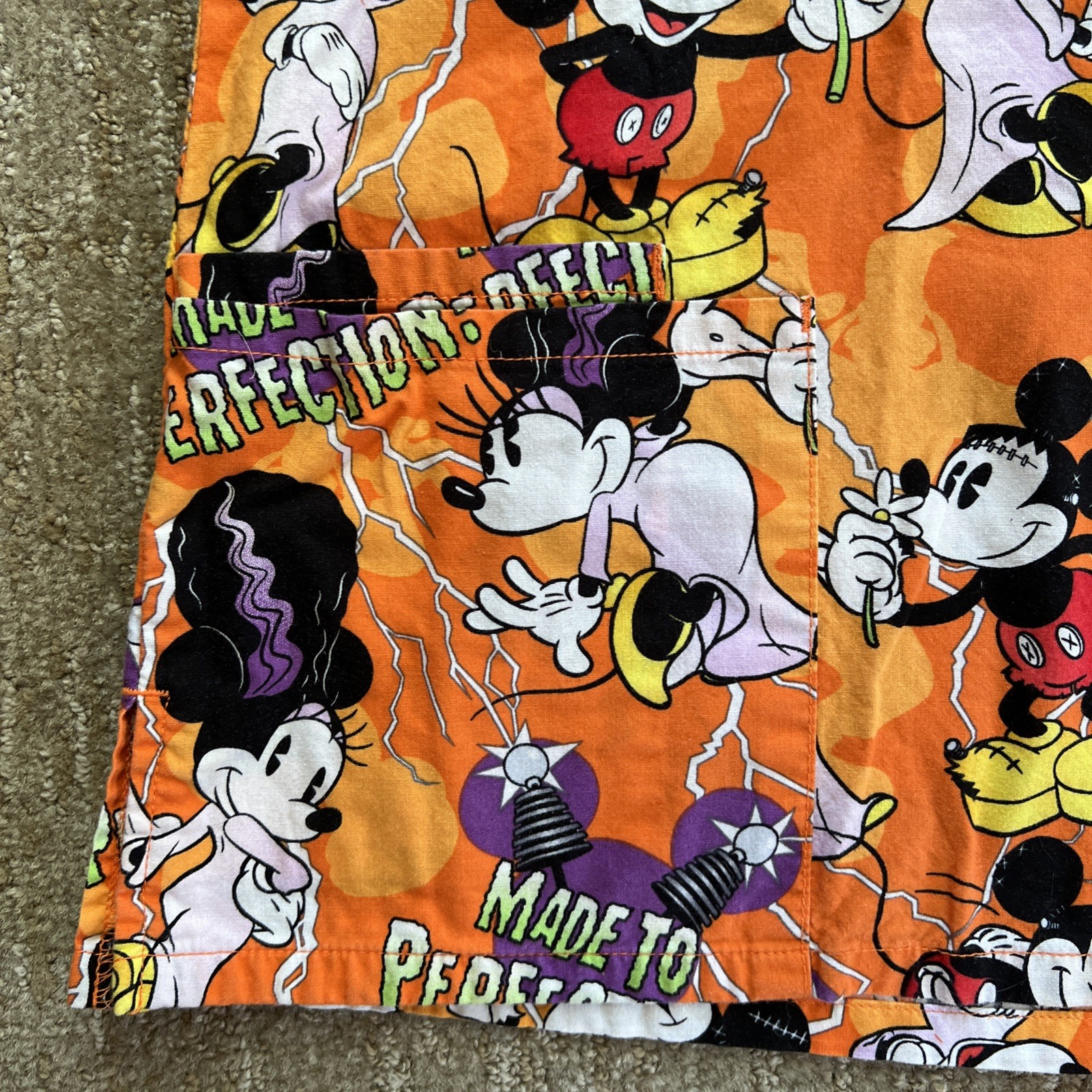 Disney Scrub Top Minni Mickey Orange Halloween Womens Med Colorful