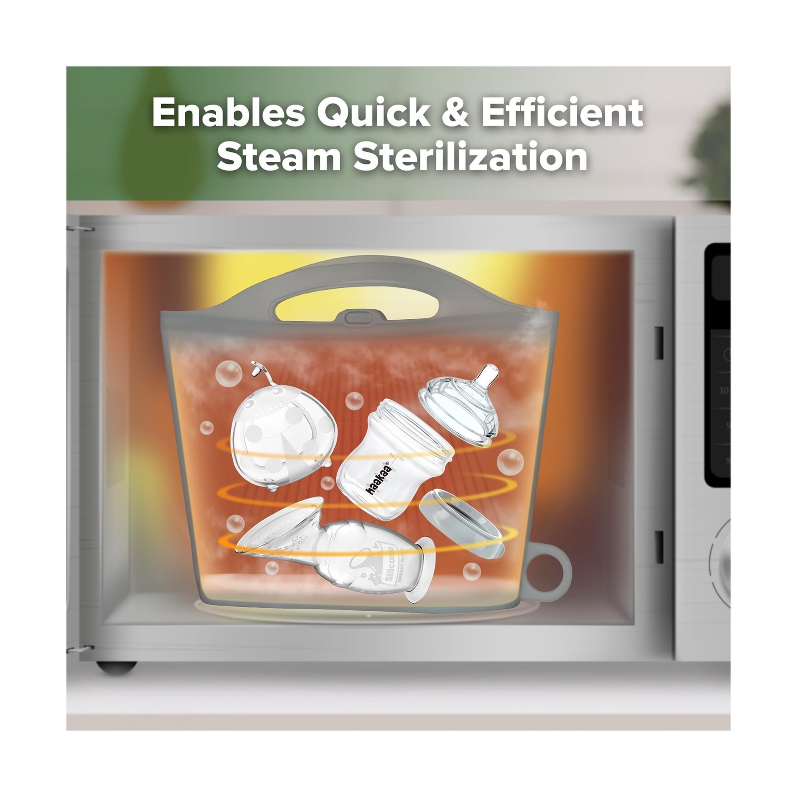 Haakaa Silicone Microwave Steam Sterilizer Bags for Travel, Reusable Silicone...