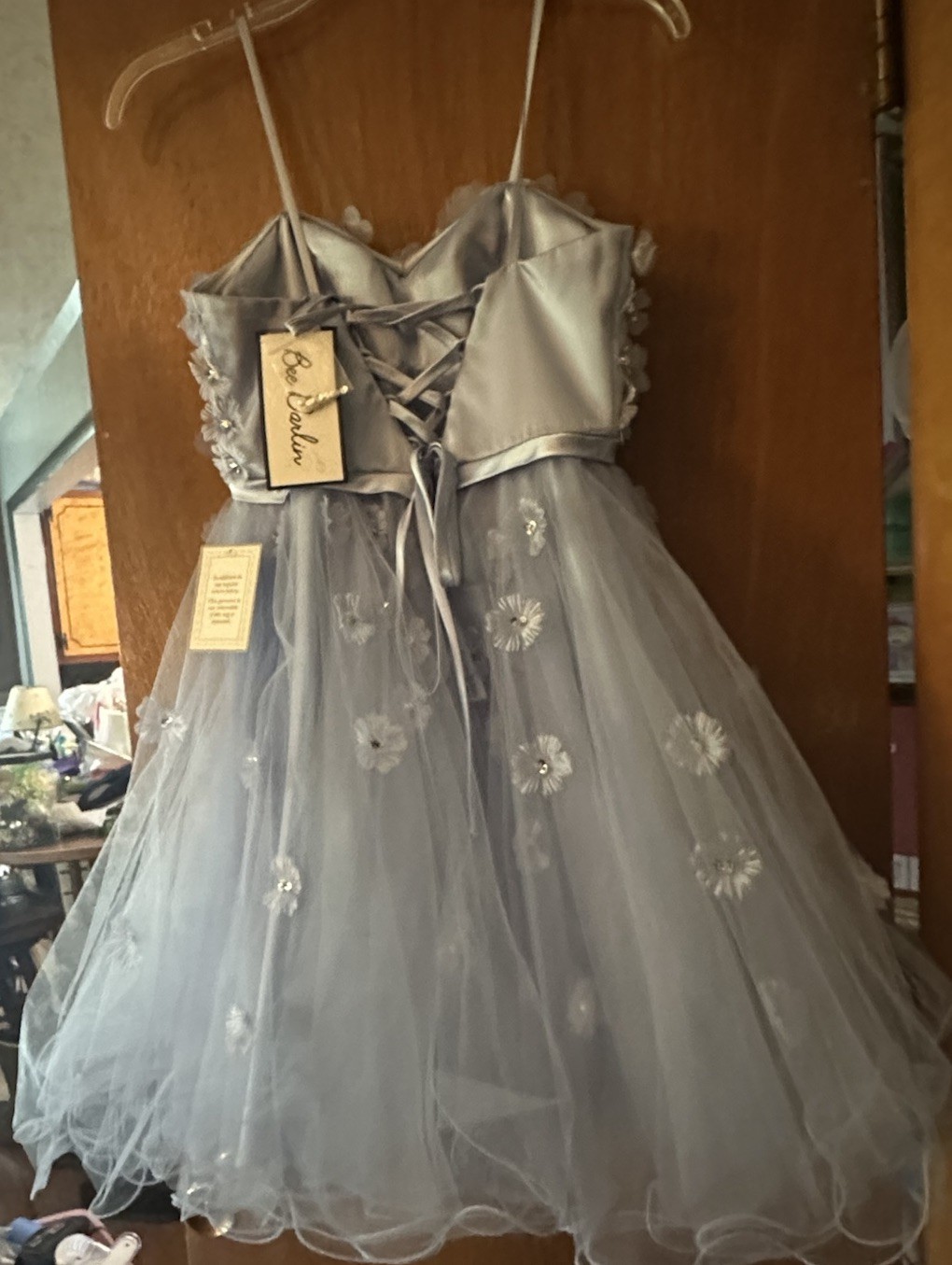как выглядит Beautiful Bee Darlin Formal Occasion mini Dress NWT Light Blue Tulle Sequins фото