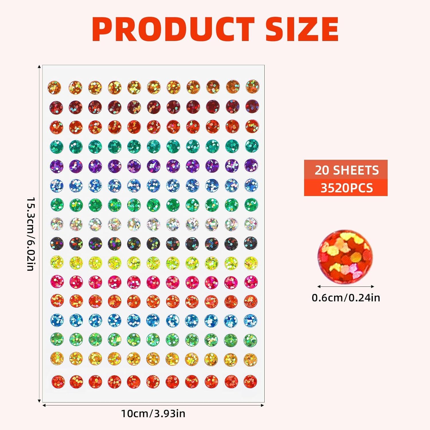 как выглядит 20 Sheets/3520Pcs Color Coding Labels, Sparkle Shiny Dot Stickers 16 Colors Lase фото