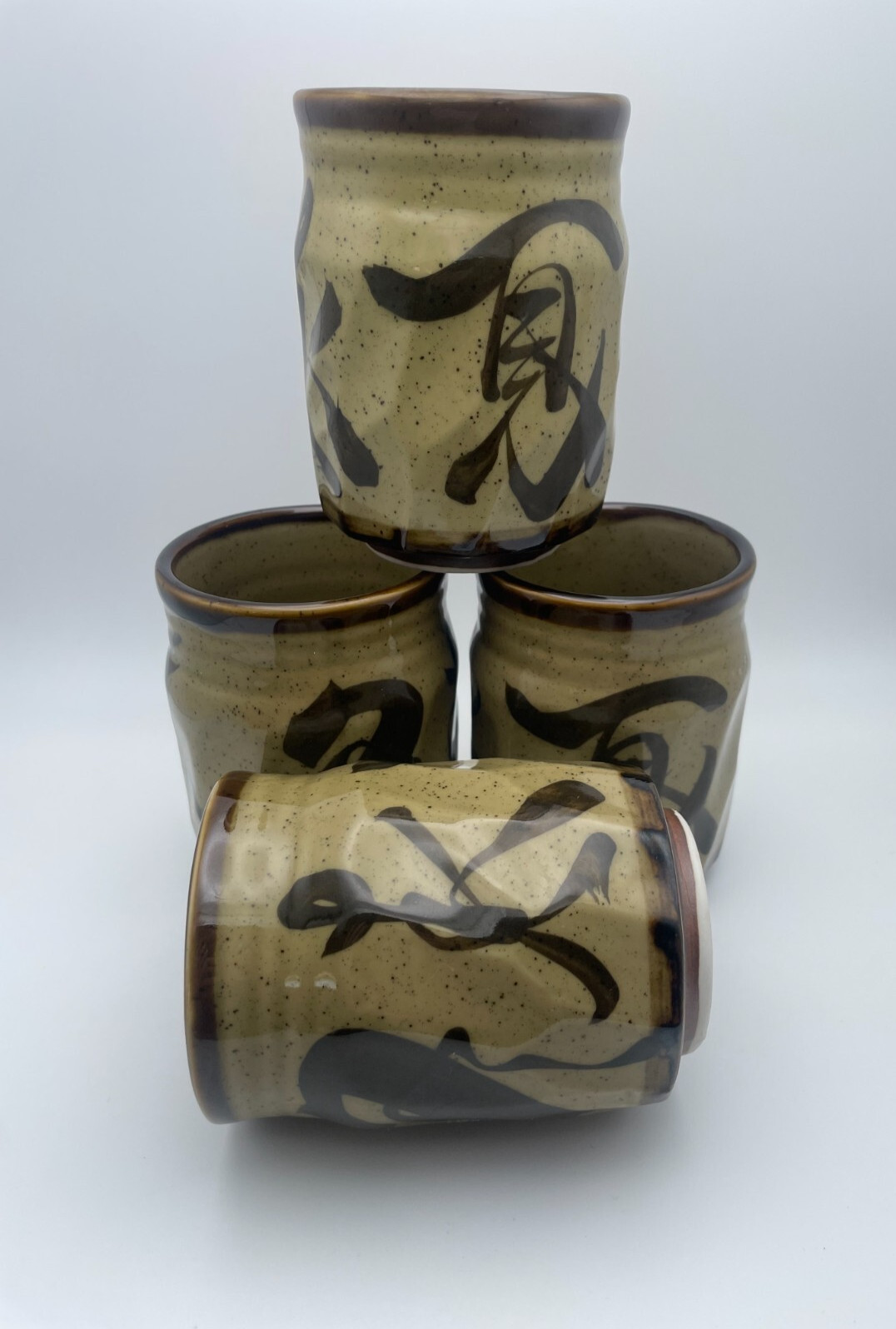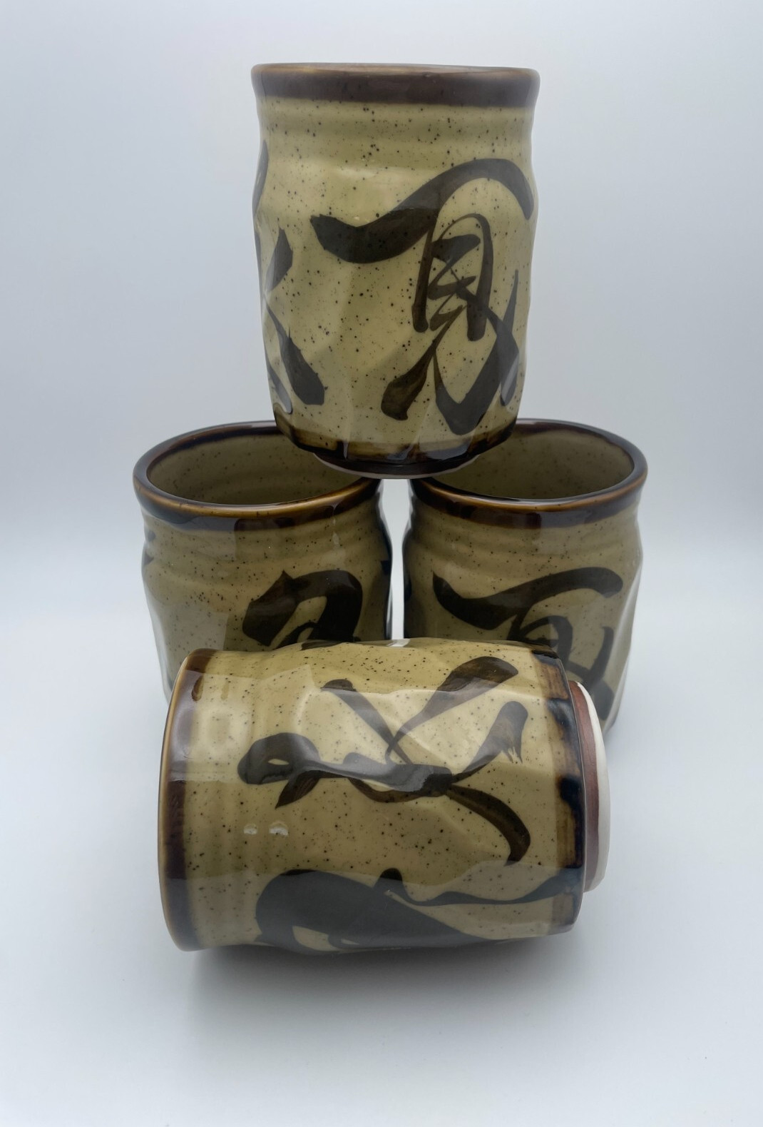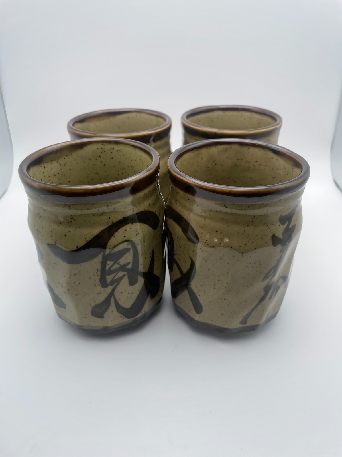• Japanese Yunomi Tea Cups Four Seasons Spring Sumer Winter Fall 10oz S/4 BrownC85