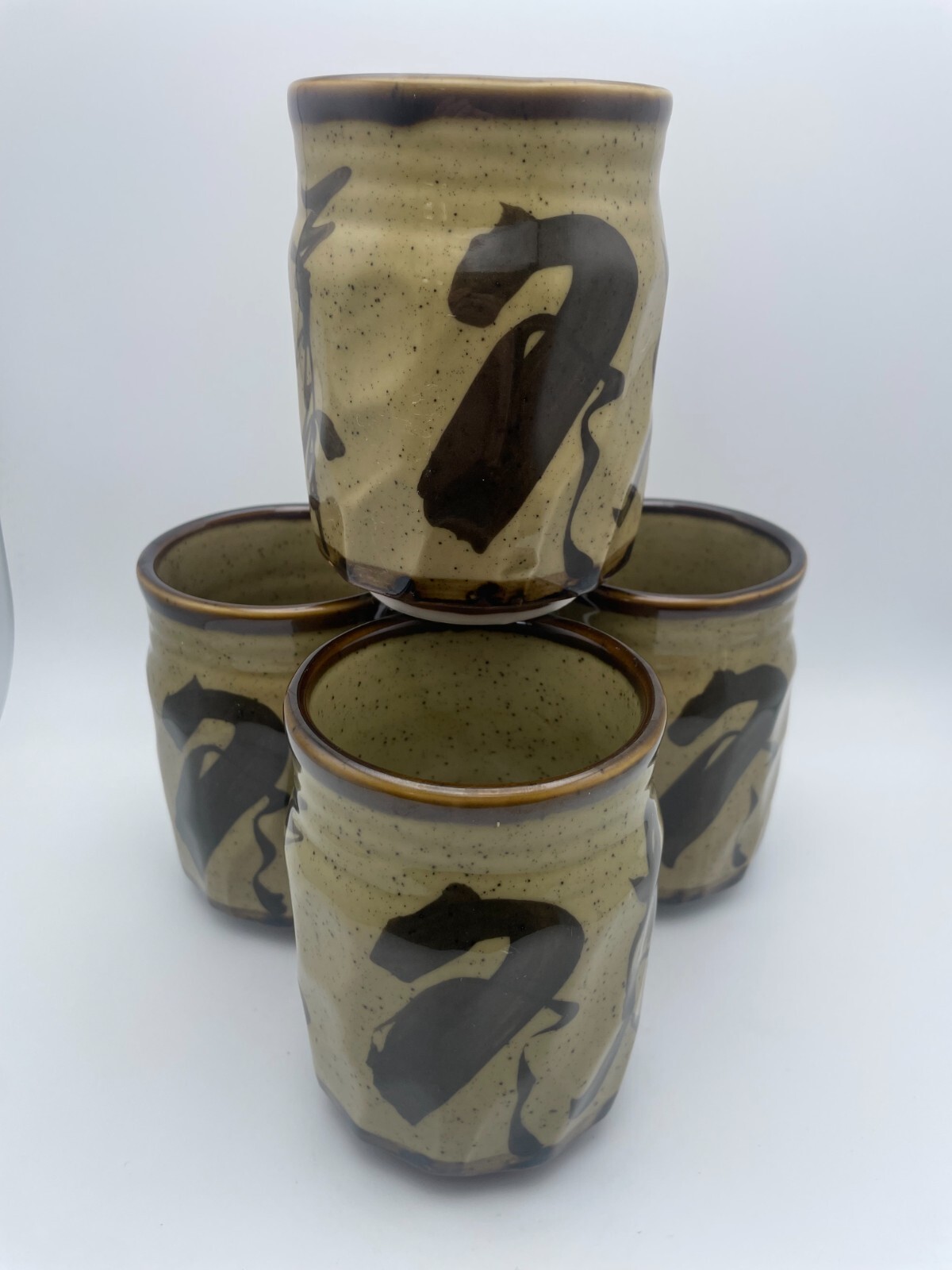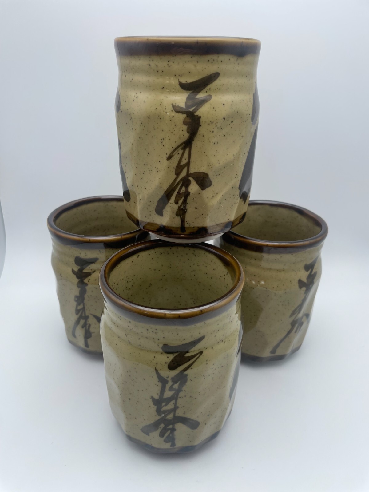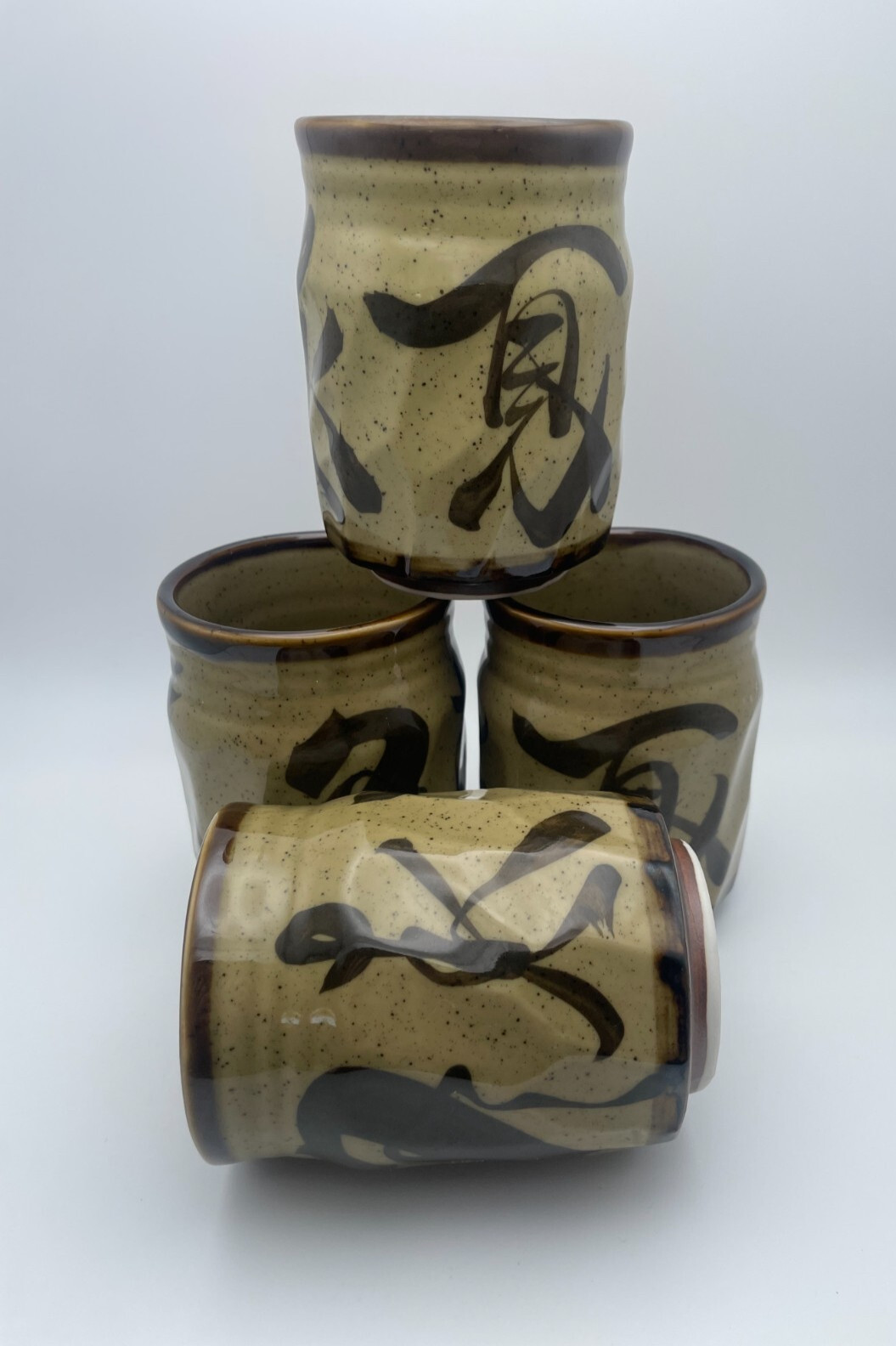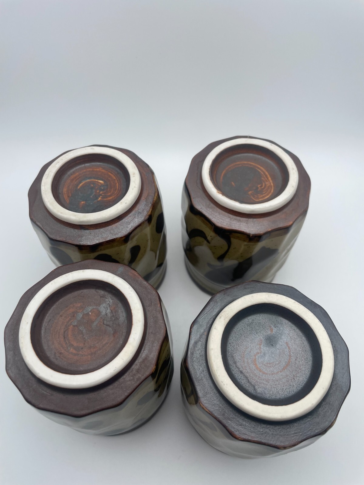 • Japanese Yunomi Tea Cups Four Seasons Spring Sumer Winter Fall 10oz S/4 BrownC85