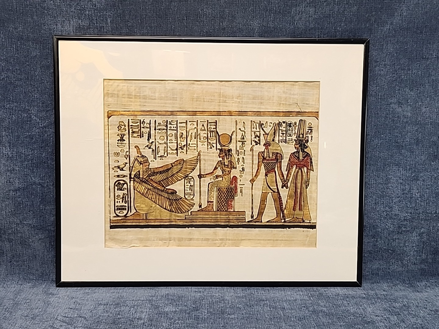 • Vintage Egyptian Papyrus Painting Gods Hathor Horus Isis Maat Hieroglyphs u-16D