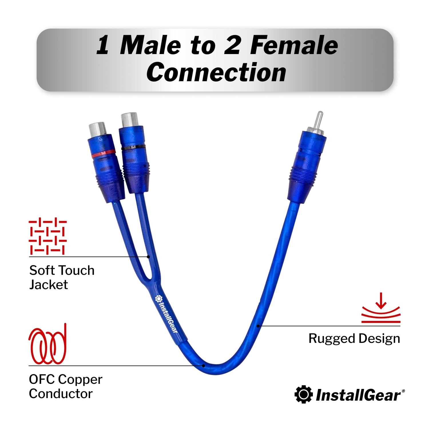 1 ft Shielded RCA Y Adapter Male to 2 Female Splitter Connector 2 Pack