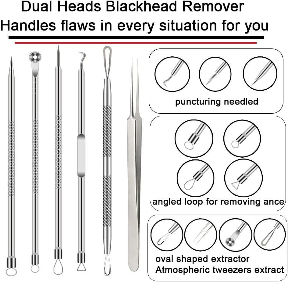 Pimple Popper Tool Kit, 6 Pcs Blackhead Remover Acne Needle Tools Set Removing T