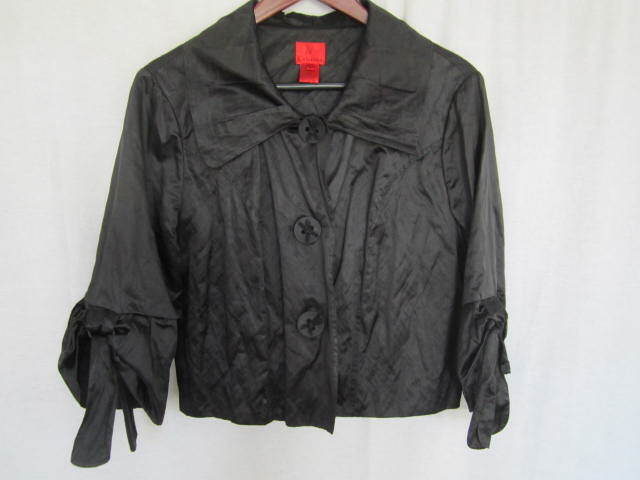 Vintage V Cristina Womens Jacket Large Black 3/4 Sleeves Polyester Cotton