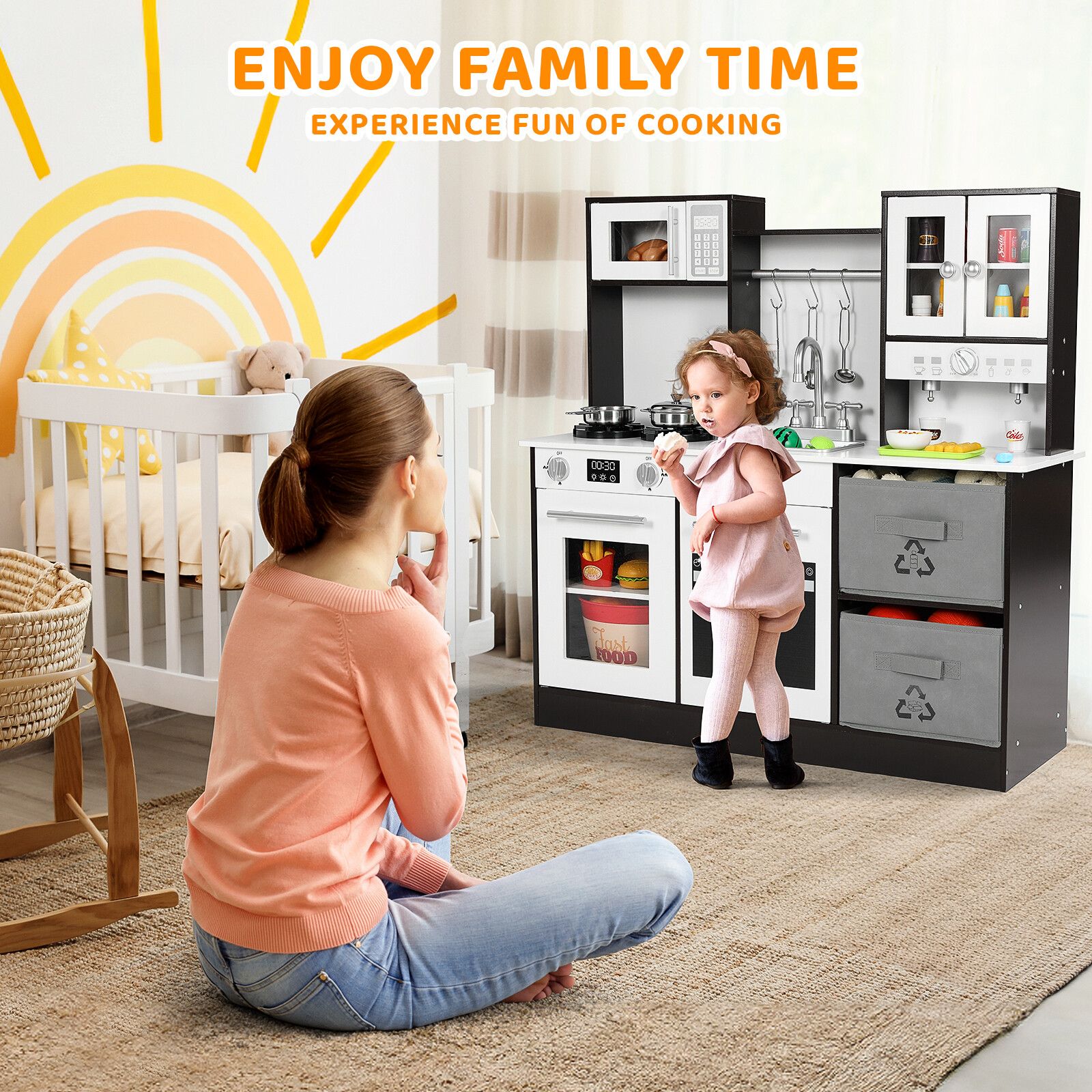 Kitchen Set for Kids, Toodler Pretend Kitchen Cooking Playset W/ 2 Fabric Boxes