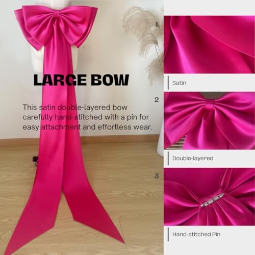 Elegant Removable Big Bow Train for Wedding Dress Large Detachable Hot Pink