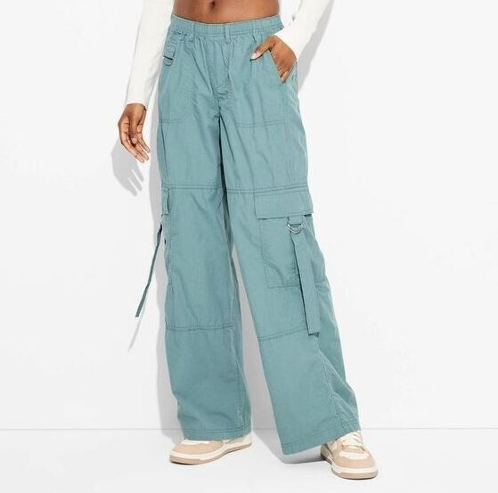 Wild Fable Women's Mid Rise Wide Leg Relaxed Cargo Pants Blue