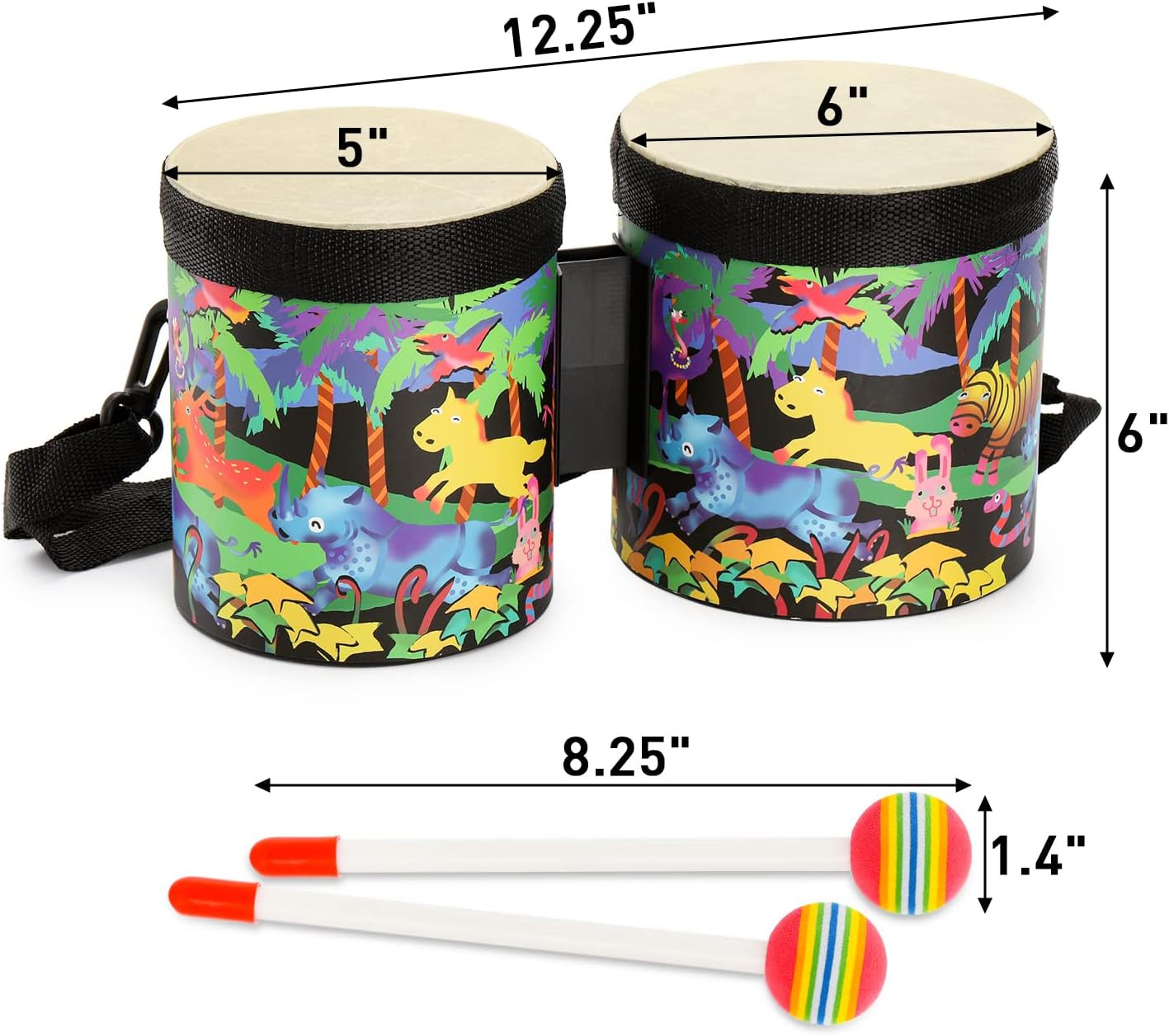 как выглядит 5" and 6" Bongo Drum with Storage Bag and Mallets, Hand Drum Kids Drum Set Percu фото
