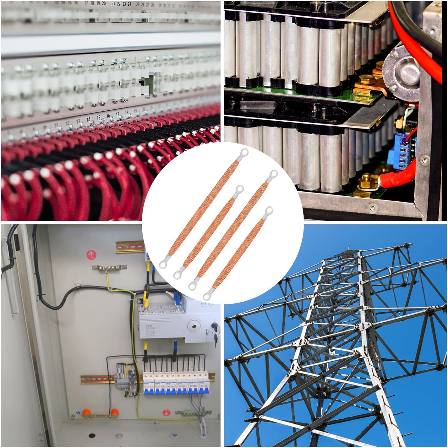 10x Universal Engine Automotive Ground Strap Connector Flat Braided Copper Cable