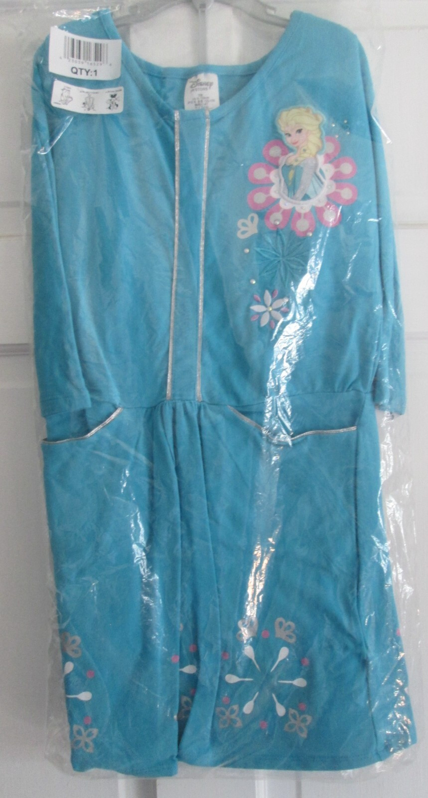 как выглядит NWT Disney Store Frozen Elsa Teal Silver Knit Dress Pockets Gray Leggings Sz 7 8 фото